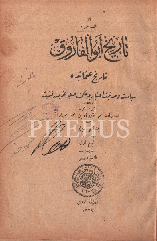 TÂRÎH-İ EBU´L-FÂRÛK (5. Cilt), Mehmed Murad, Matbaa-i Âmedi, 1329, 422 sayfa, 14x20 cm…