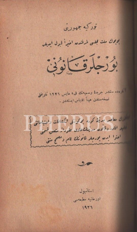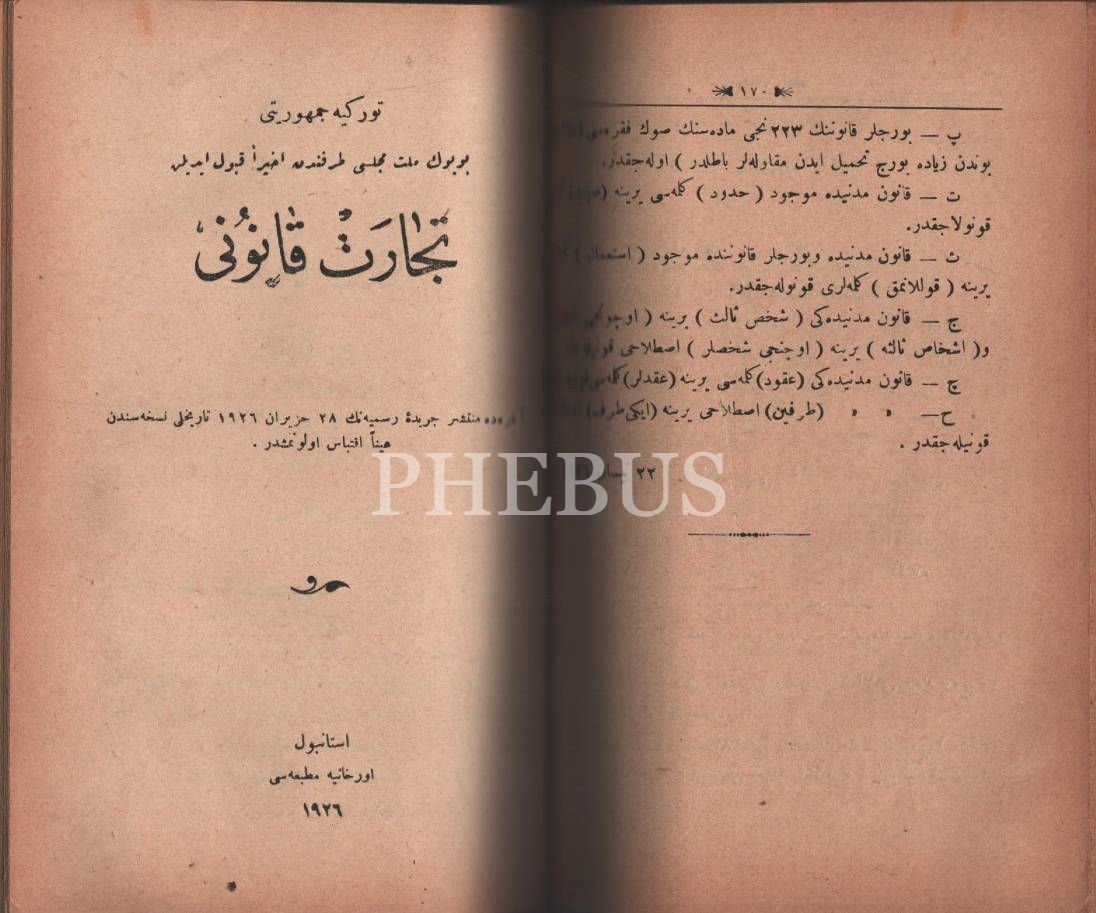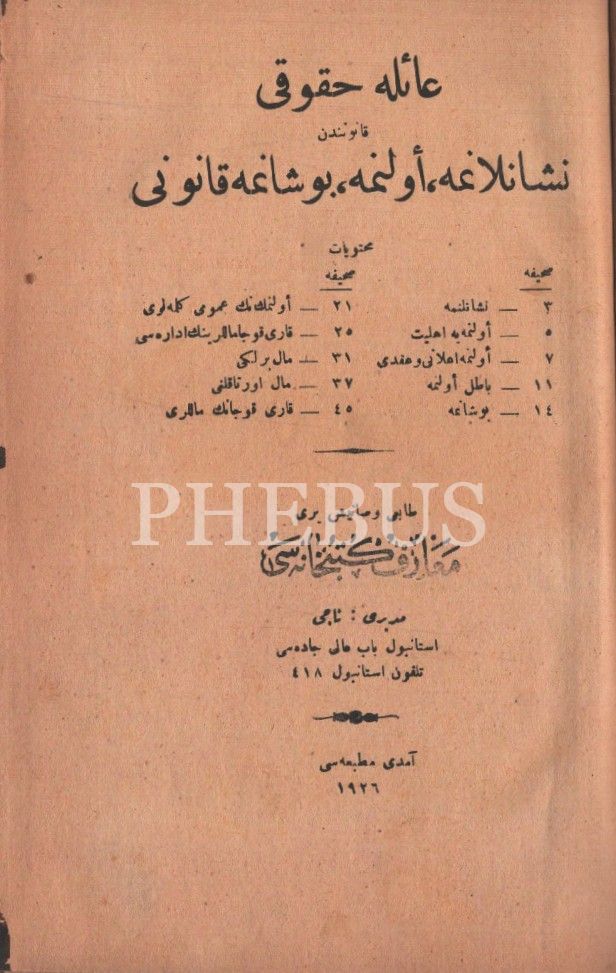 Aynı cilt içinde üç eser: AİLE HUKUKU, 261 sayfa, BORÇLAR KANUNU, 180 sayfa, TİCARET KANUNU, 272 sayfa, 1926, Maarif Kitaphanesi, 14x21 cm…