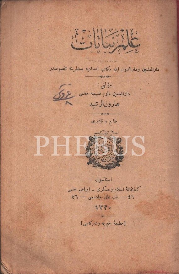İLM-İ NEBATAT, Harunürreşid, 1330, Kitaphane-i İslam ve Askeriye, 200 sayfa, 14x19 cm…