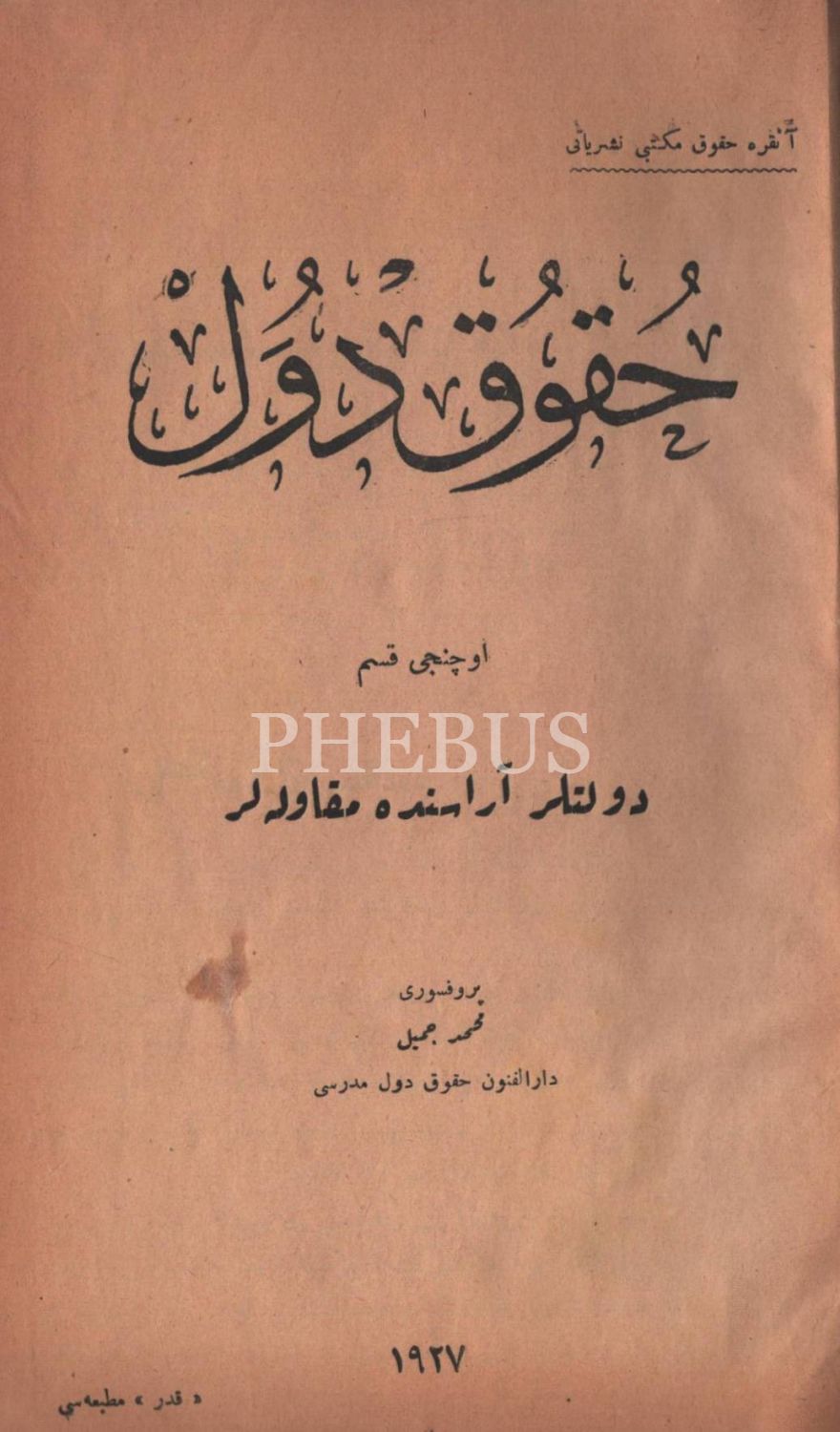 HUKUK-I DÜVEL (3 ve 4. kısım bir arada) Mehmed Cemil, 1927, Kader Matbaası, 210+72 sayfa, 15x23 cm…