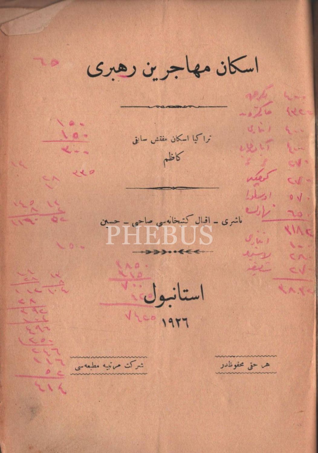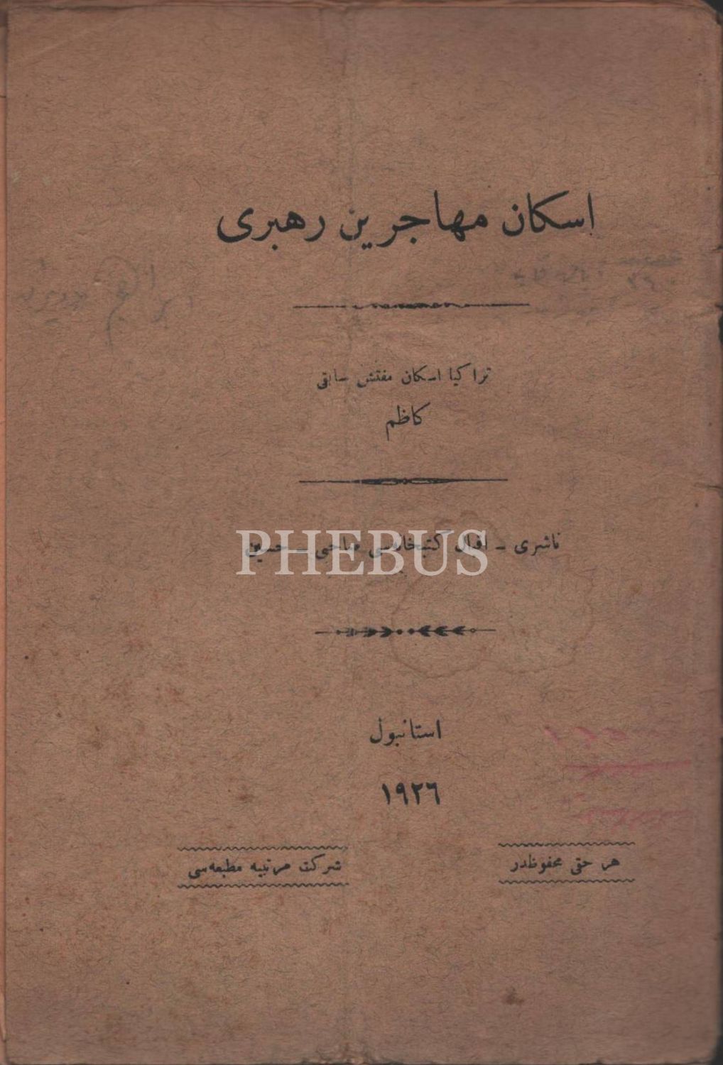 İSKÂN-I MUHACİRİN REHBERİ, Kâzım, 1926, Şirket-i Mürettibiye Matbaası, 32 sayfa, 15x21 cm…