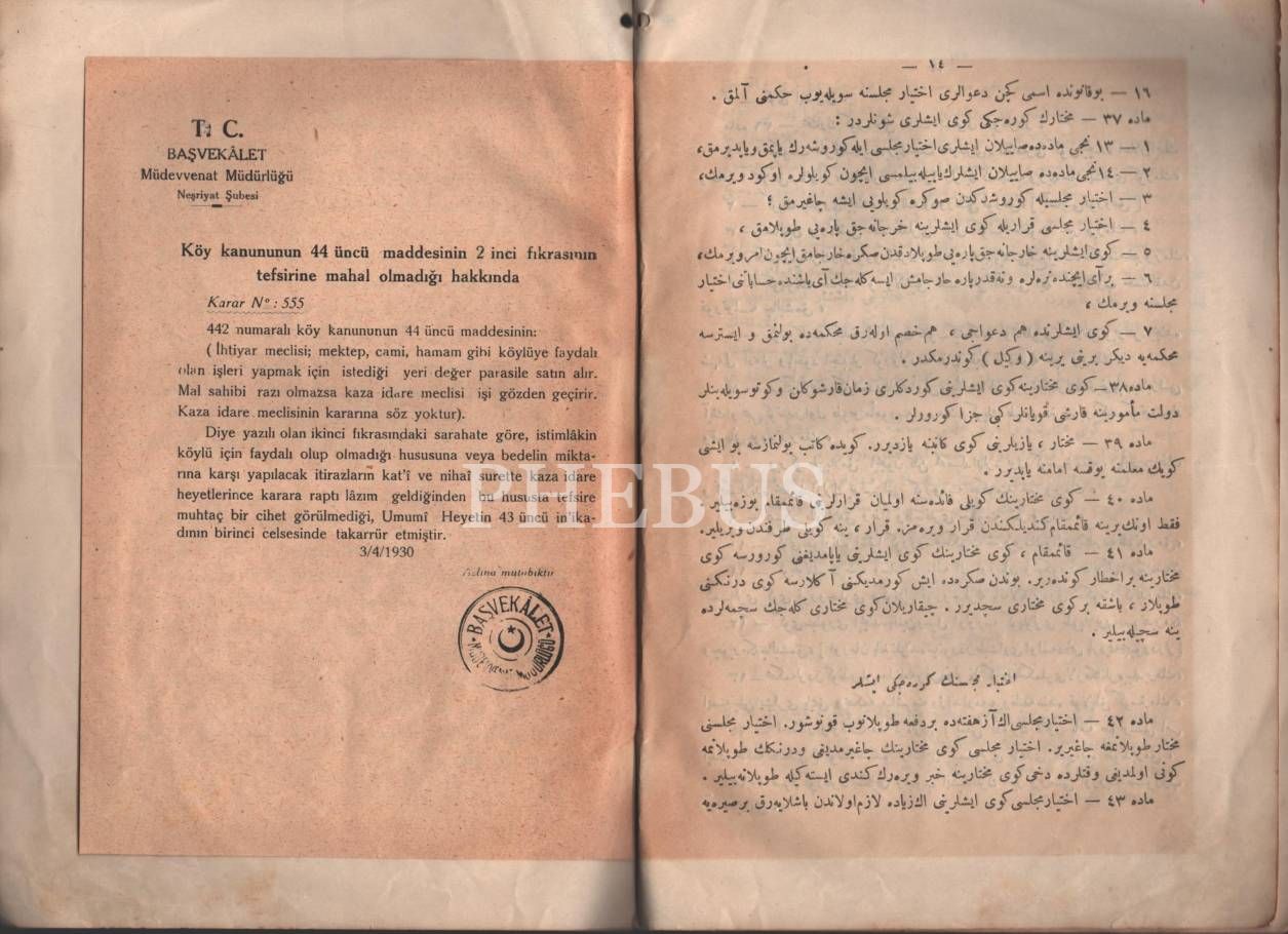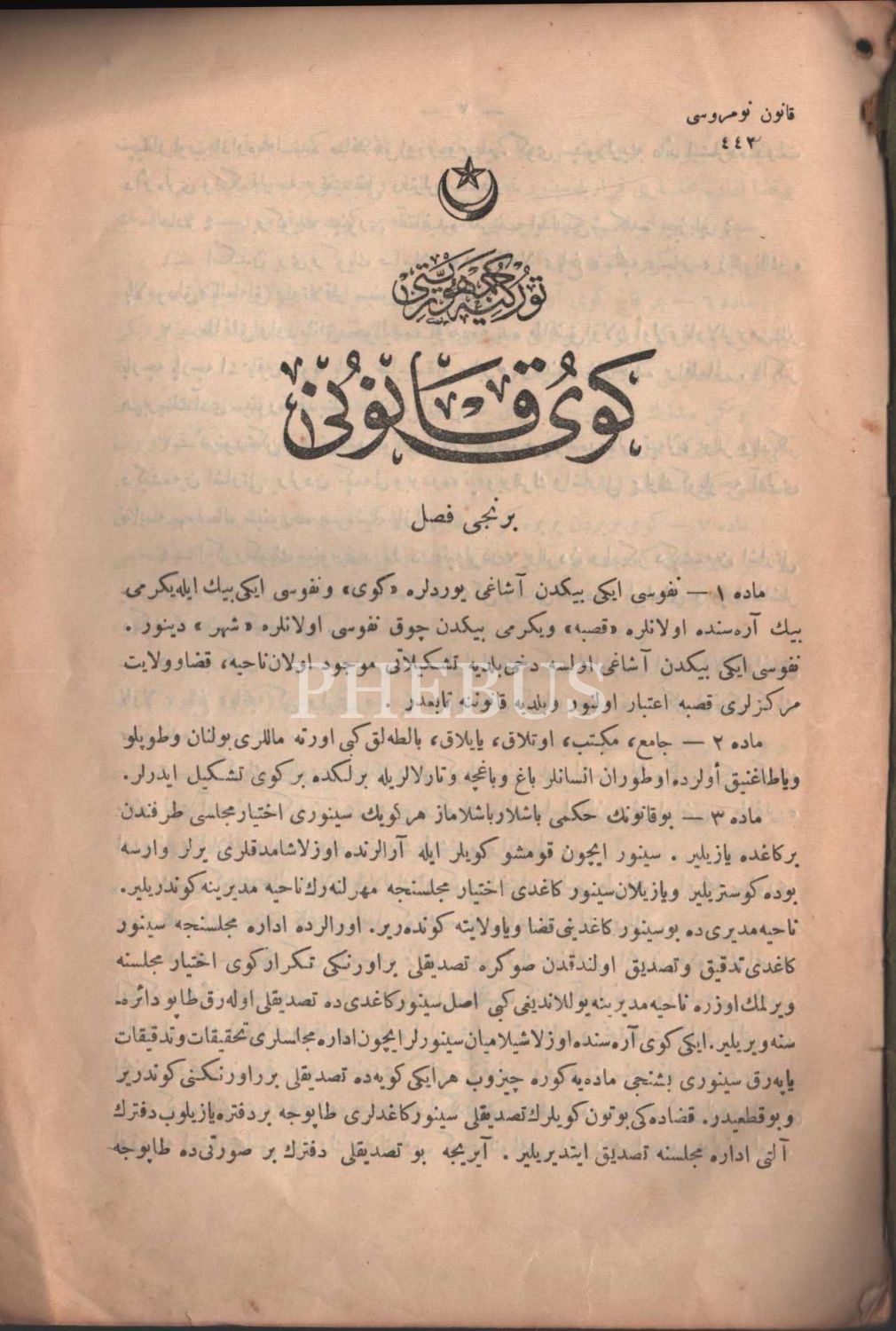 KÖY KANUNU, Dahiliye Nezaretince Suret-i Mahsusada Tab´ Edilmiştir, 1340, İkdam Matbaası, 24 sayfa, 17x24 cm…