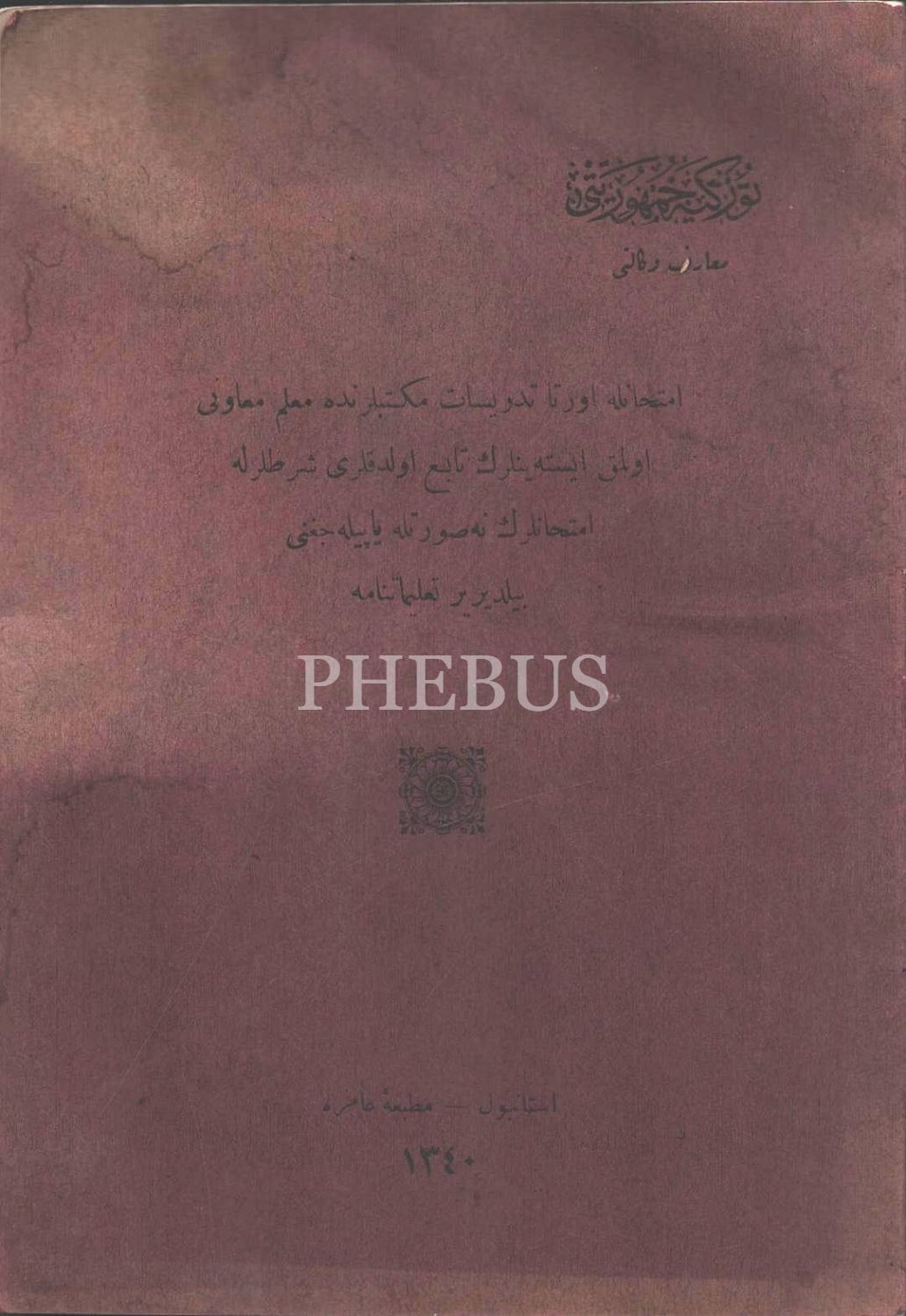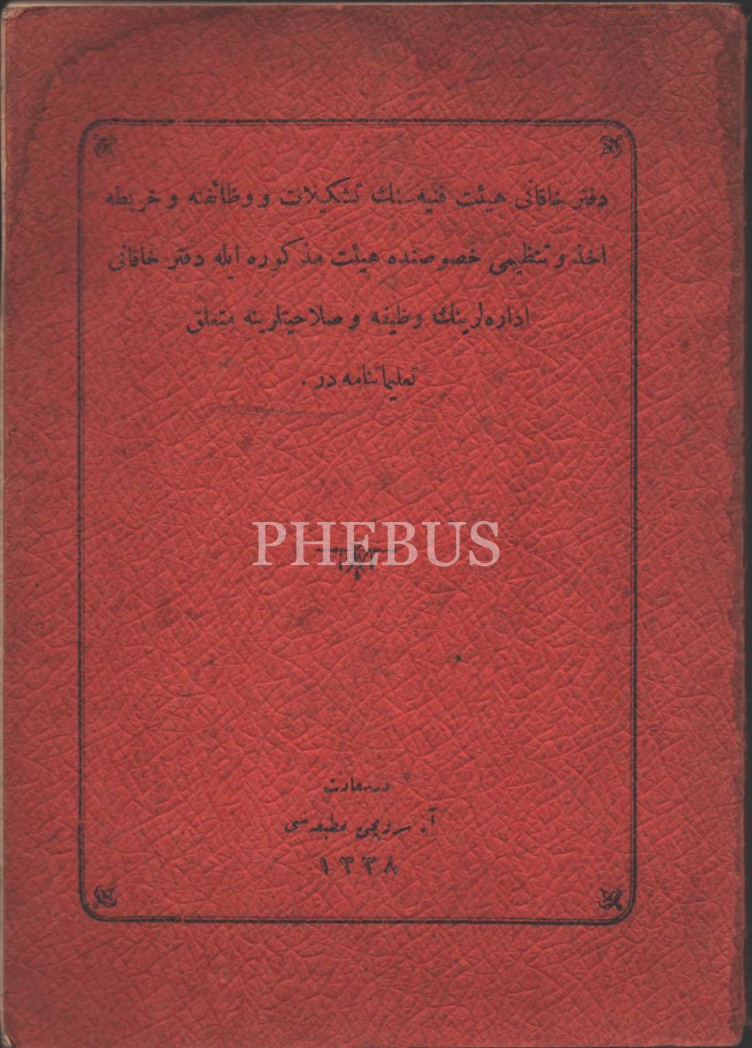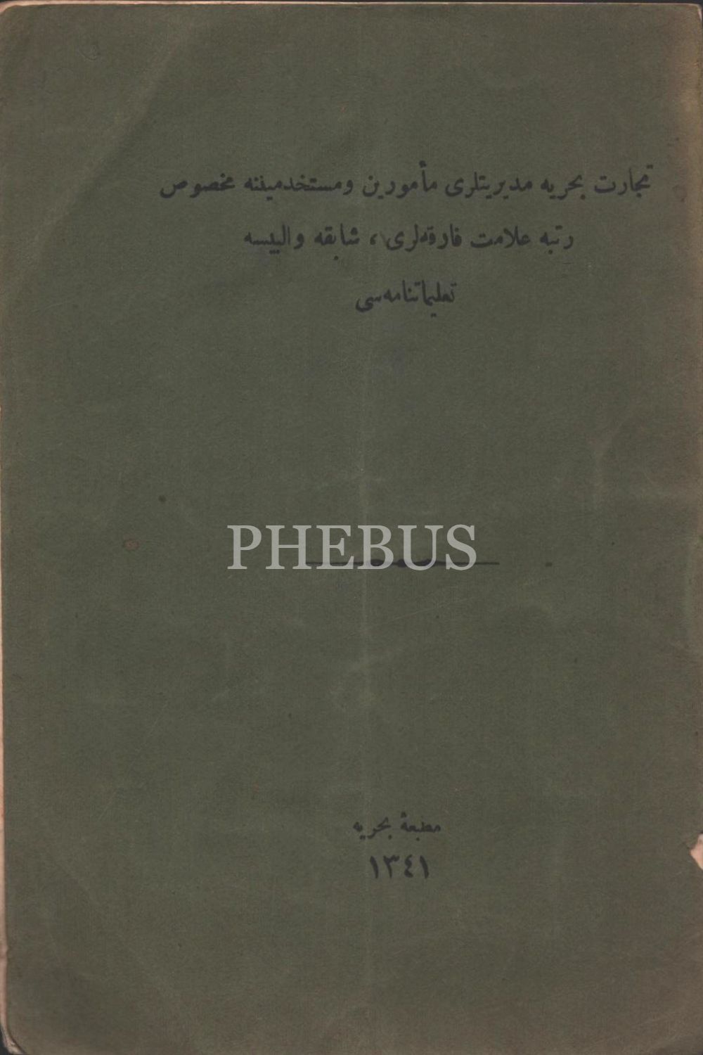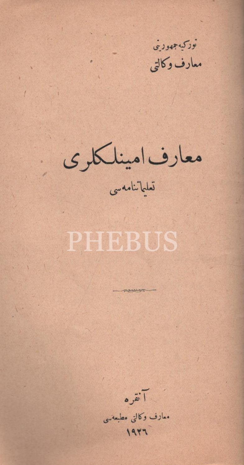 MAARİF EMİNLİKLERİ TALİMATNAMESİ, 1926, 16 Sayfa, DEFTER-İ HAKANİ HEYET-İ FENNİYESİNİN TEŞKİLAT VE VEZAİFİNE… TALİMATNAMEDİR, 1338, 56 sayfa, TİCARET-İ BAHRİYE MÜDİRİYETLERİ MEMURİN VE MÜSTAHDİMİNİNE MAHSUS RÜTBE ALAMET-İ FARİKALARI, ŞAPKA VE ELBİSE TALİMATNAMESİ, 1341, 8 sayfa, İMTİHANLA ORTA TEDRİSAT MEKTEBLERİNDE MUALLİM MÜVEZZİ OLMAK İSTEYENLERİN TABİ OLDUĞU ŞARTLARLA İMTİHANLARIN NE SURETLE YAPILACAĞINI BİLDİRİR TALİMATNAME, 1340, 12 sayfa, İDMAN TALİMATNAMESİ, 1339, 188 sayfa, LAYİHA-YI ISLAHAT-I UMUMİYE, 1327, 12 sayfa, AŞAR VE AĞNAM MEMURLARININ VEZAİFİNİ MEBİN TALİMATNAMEDİR, 1295, 20 SAYFA...
