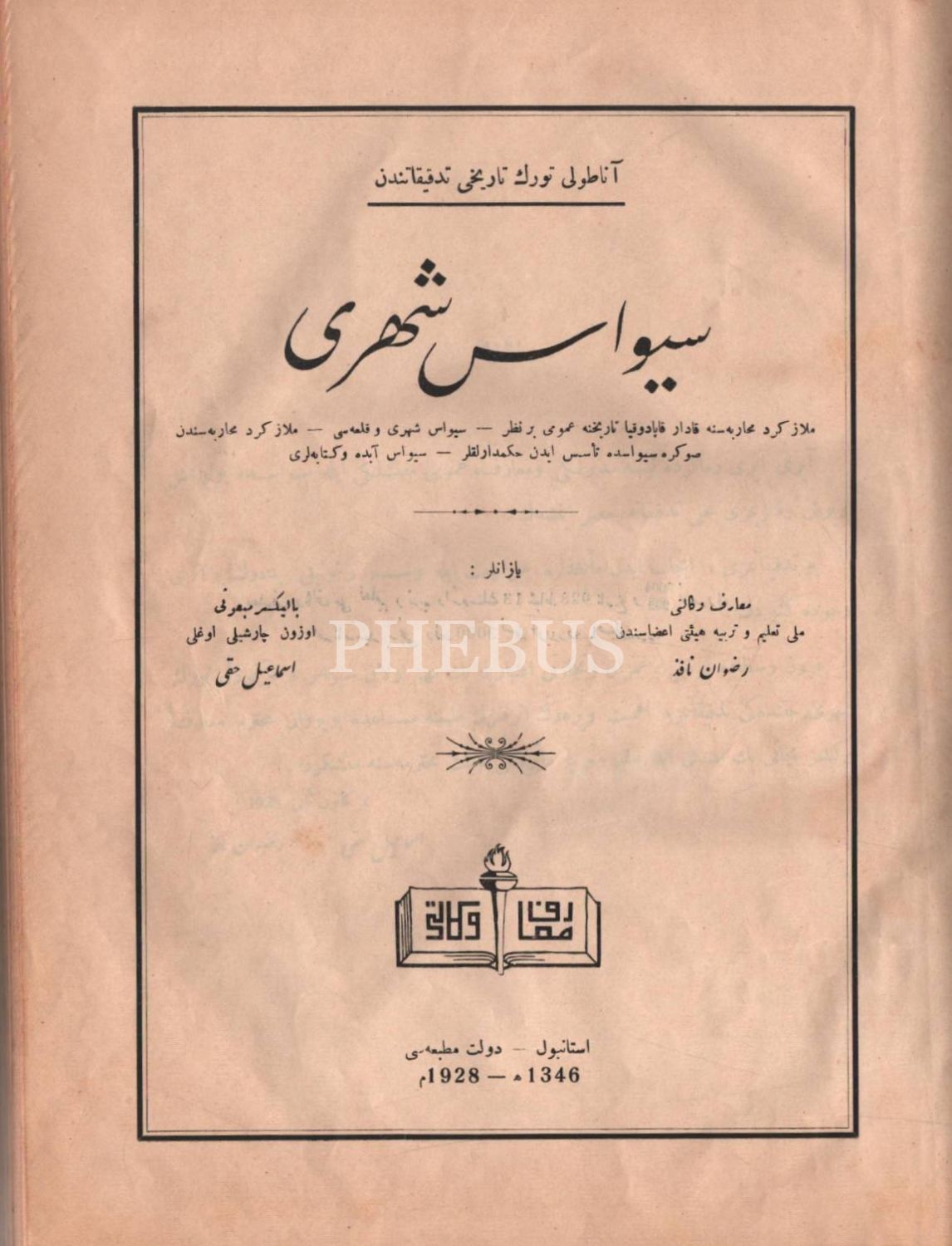 Rıdvan Nafiz ve İsmail Hakkı tarafından kaleme alınan eserde, Sivas Şehrinin tarihçesine yer verilmiştir. Ayrıca eserin son kısmında Sivas´a ait tarihi nitelikteki yapılarından, din ve devlet büyüklerinin lahitlerinden ve Sivas´a ait manzaraları yansıtan 50 adet fotoğrafa yer verilmiştir.