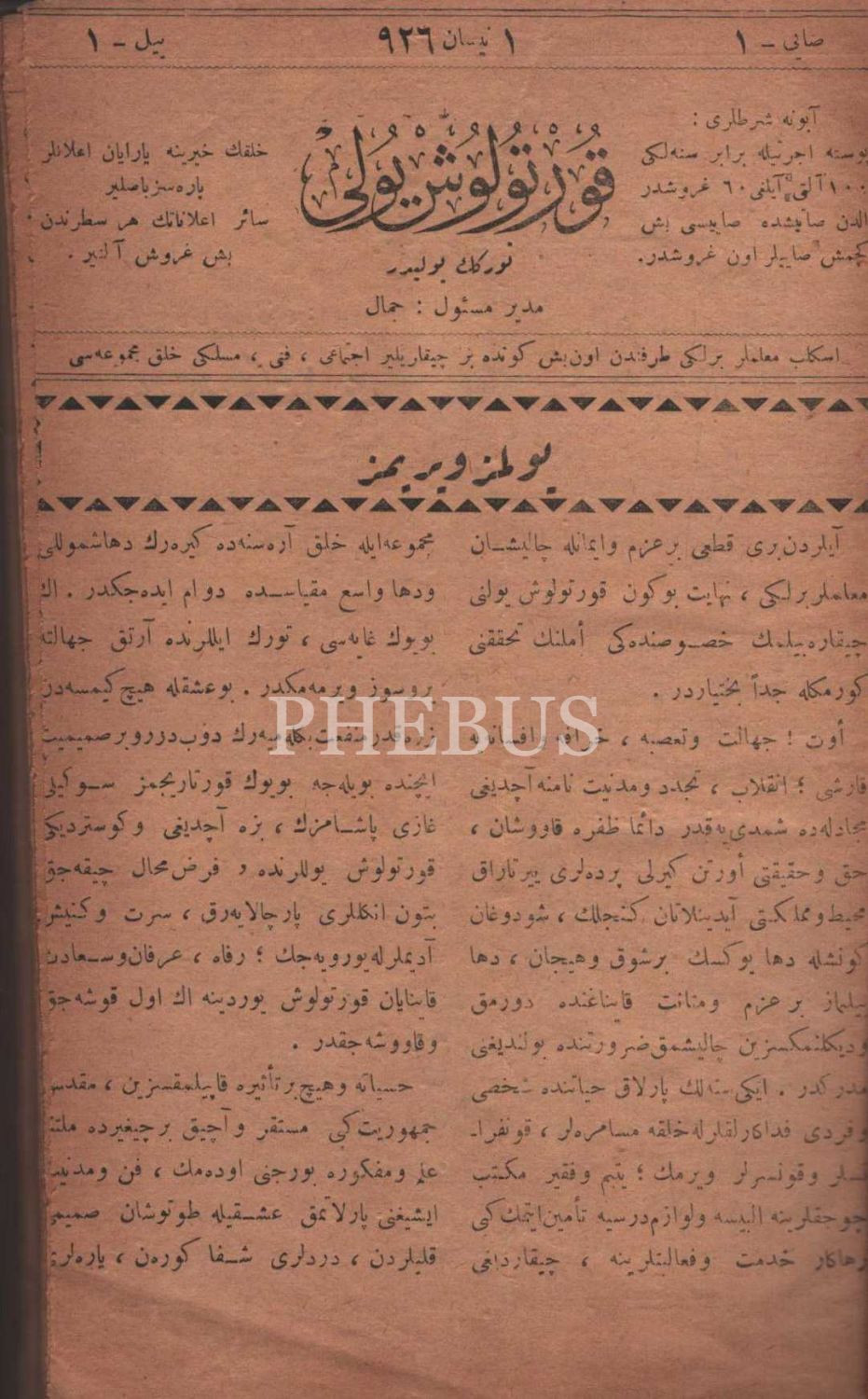 KURTULUŞ YOLU mecmuasının 1 ilâ 42. sayısı tek ciltte, İskilip Muallimler Birliği, 1926-27