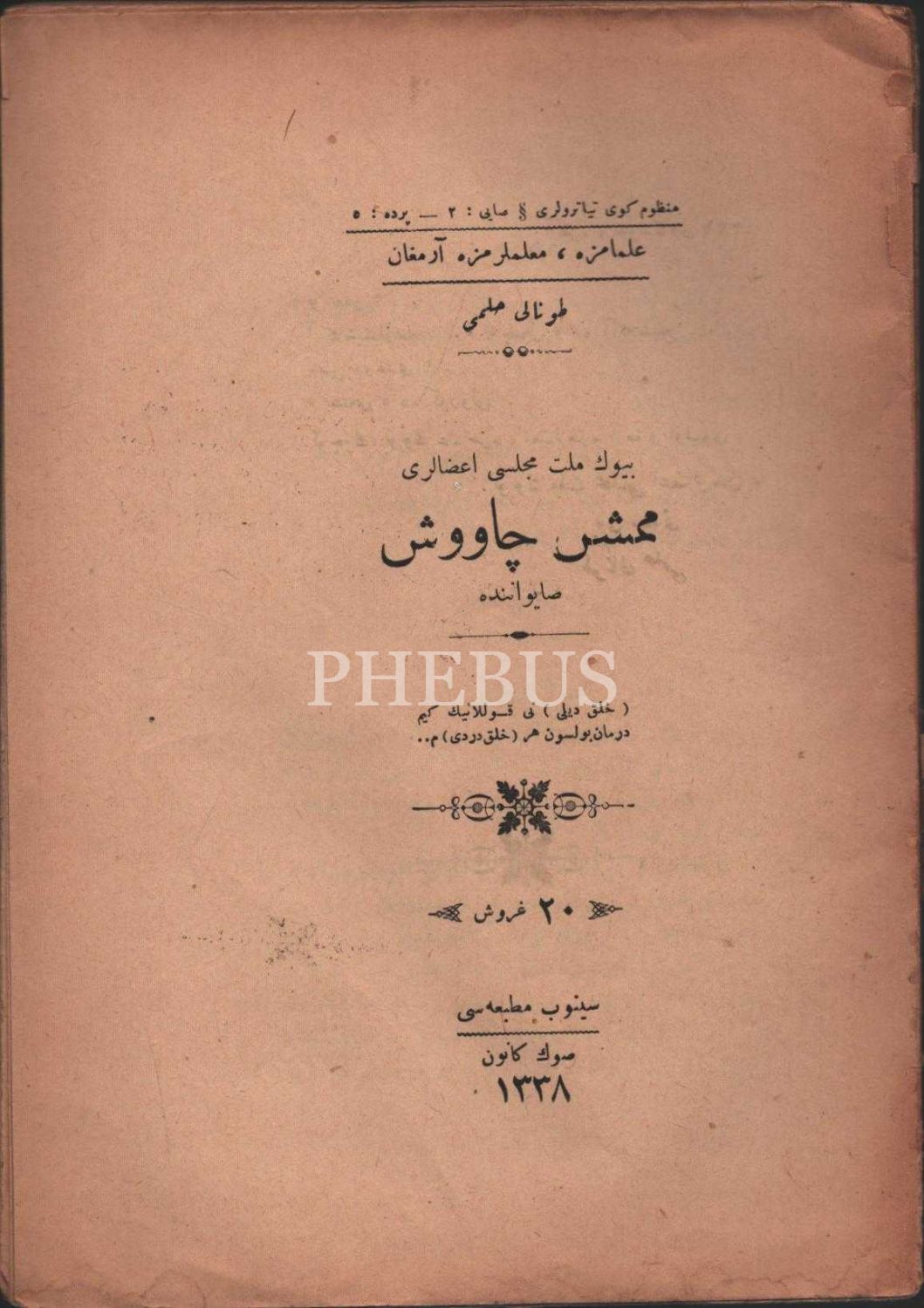 MEMİŞ ÇAVUŞ, Tunalı Hilmi, Sinop 1338, Sinop Matbaası, 42 sayfa, 14x20 cm...