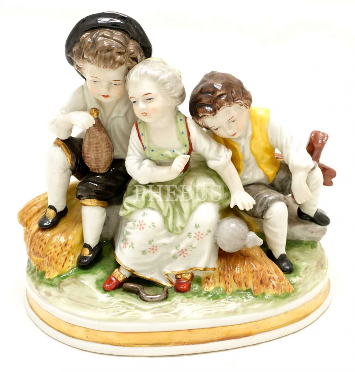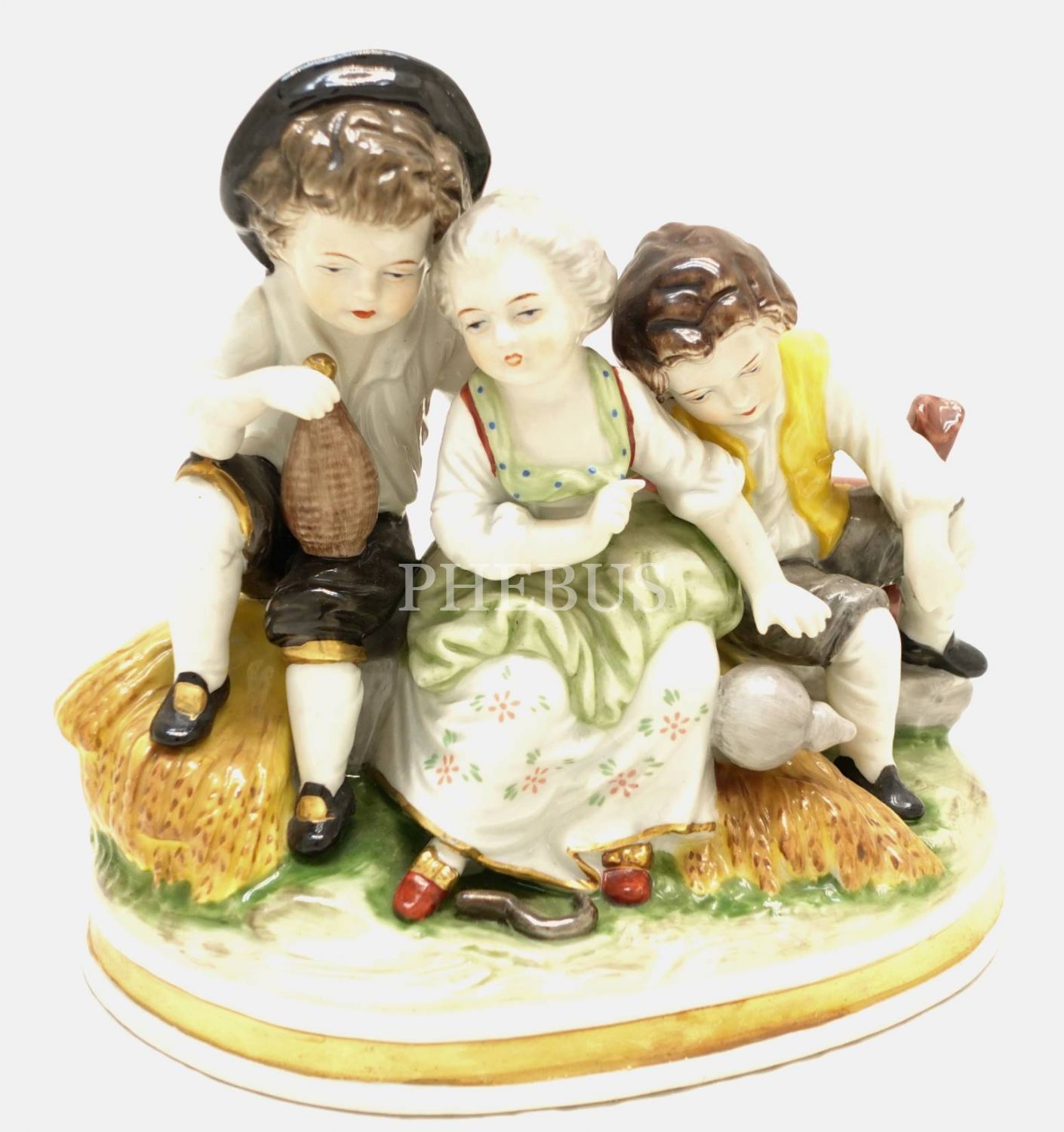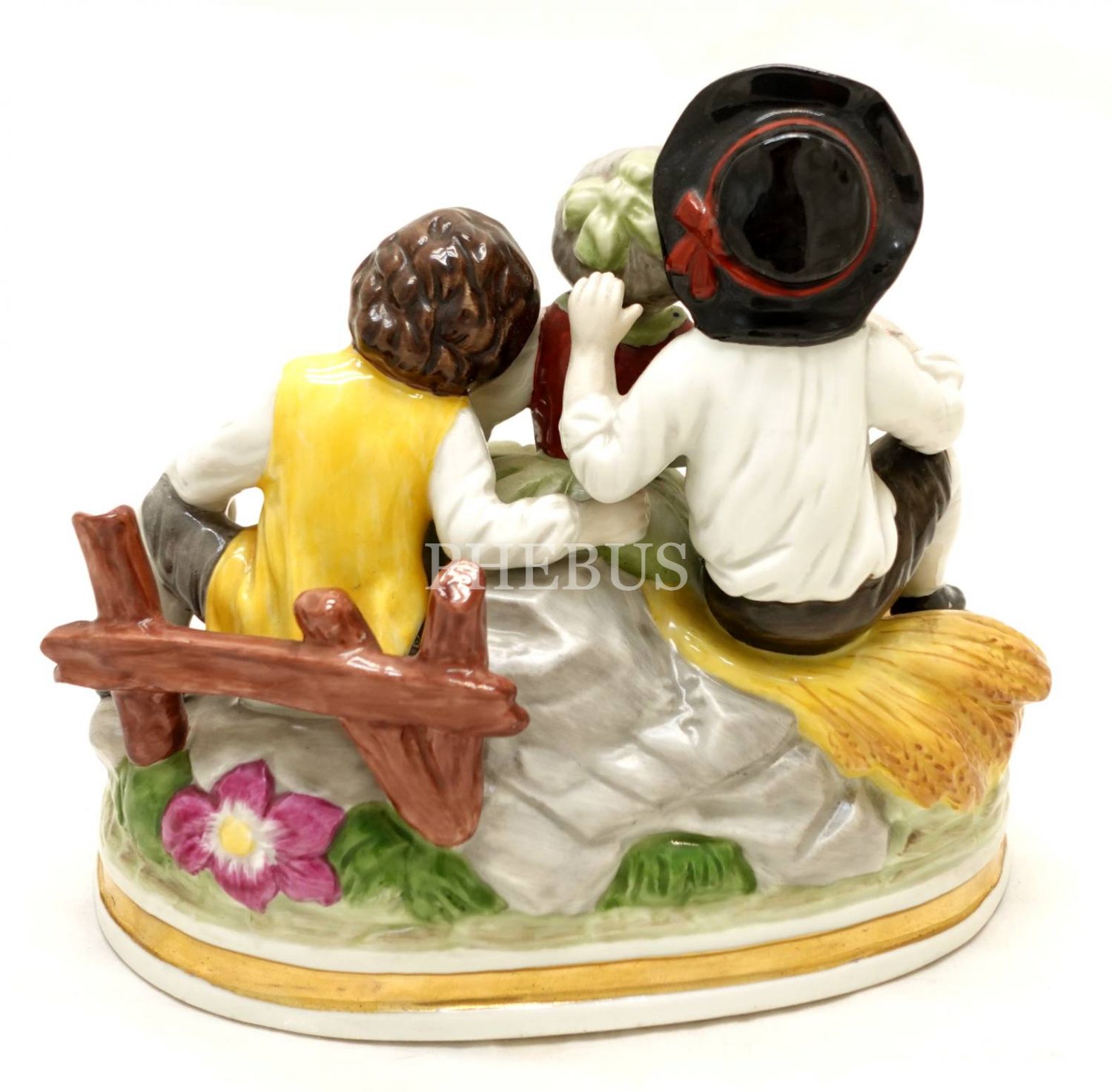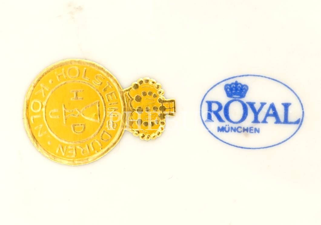 "Holstein & Düren - Köln" ve "Royal München" damgalı, çiftçi kardeşler temalı porselen biblo, 15x14x10 cm