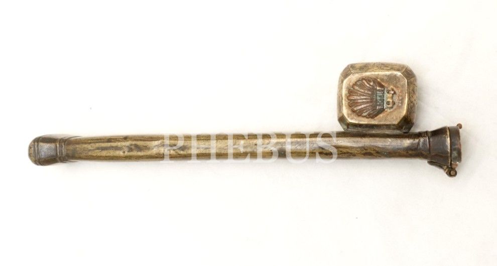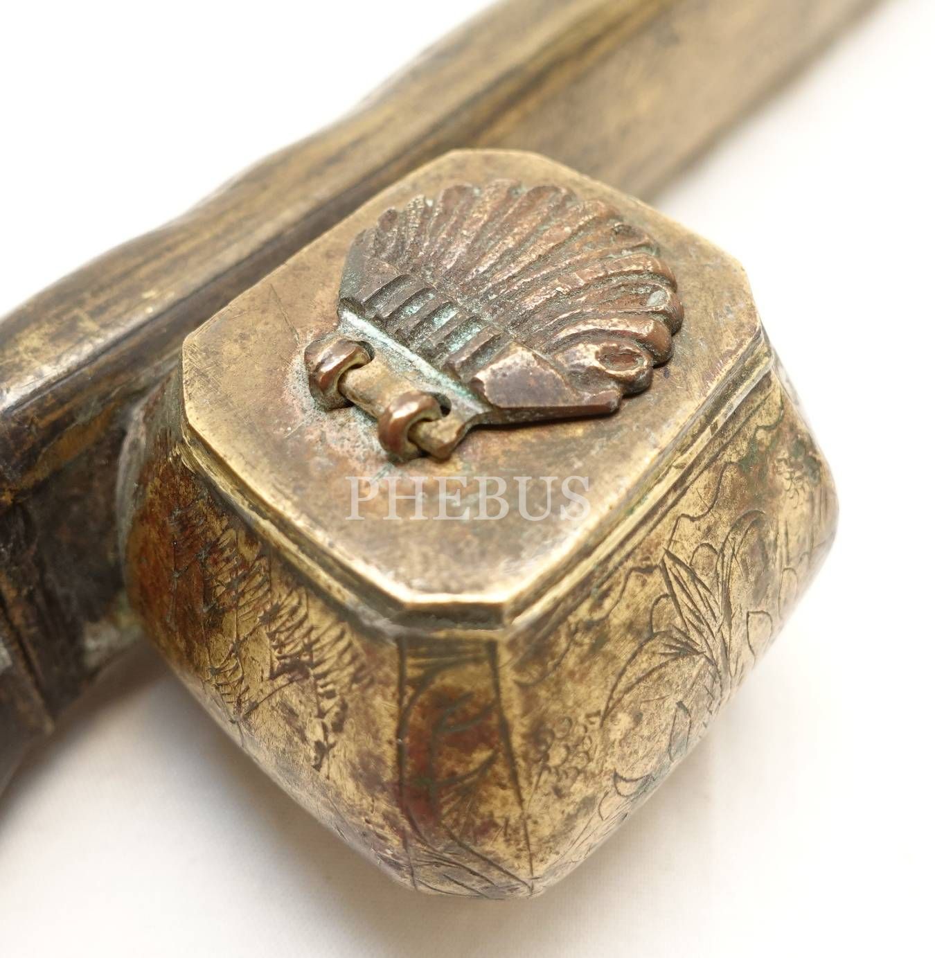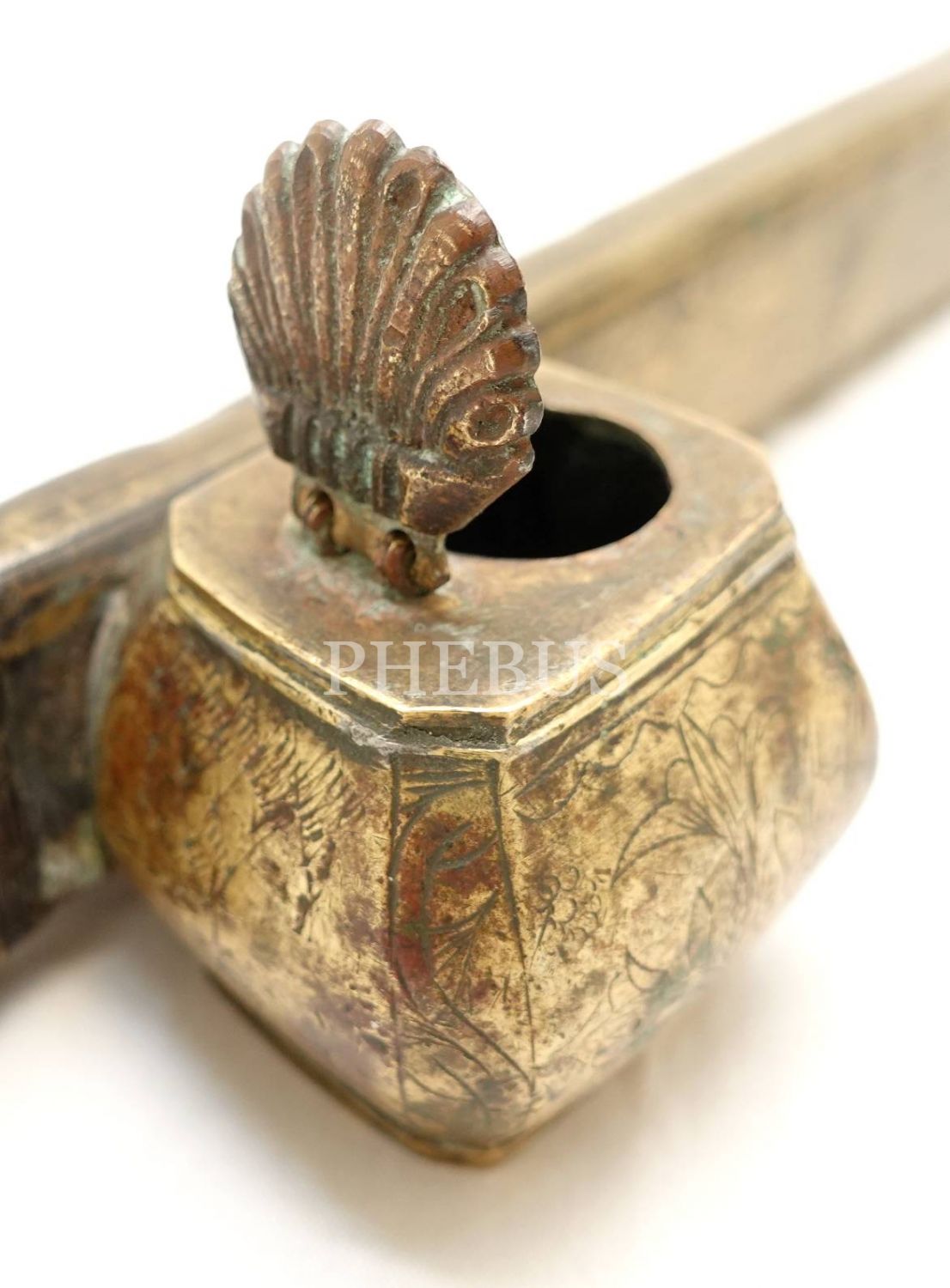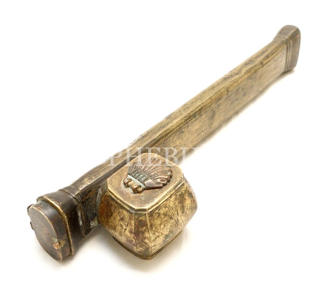 Pirinç üzeri çiçek formunda kalem işçilikli divit, 24x5x4cm