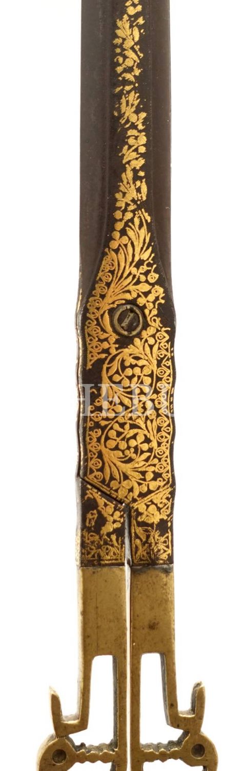 Altın kakma yaprak motifleri ile süslenmiş hattat makası, 25x4 cm