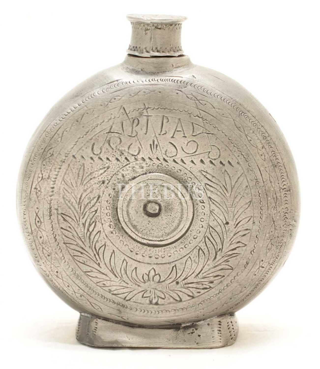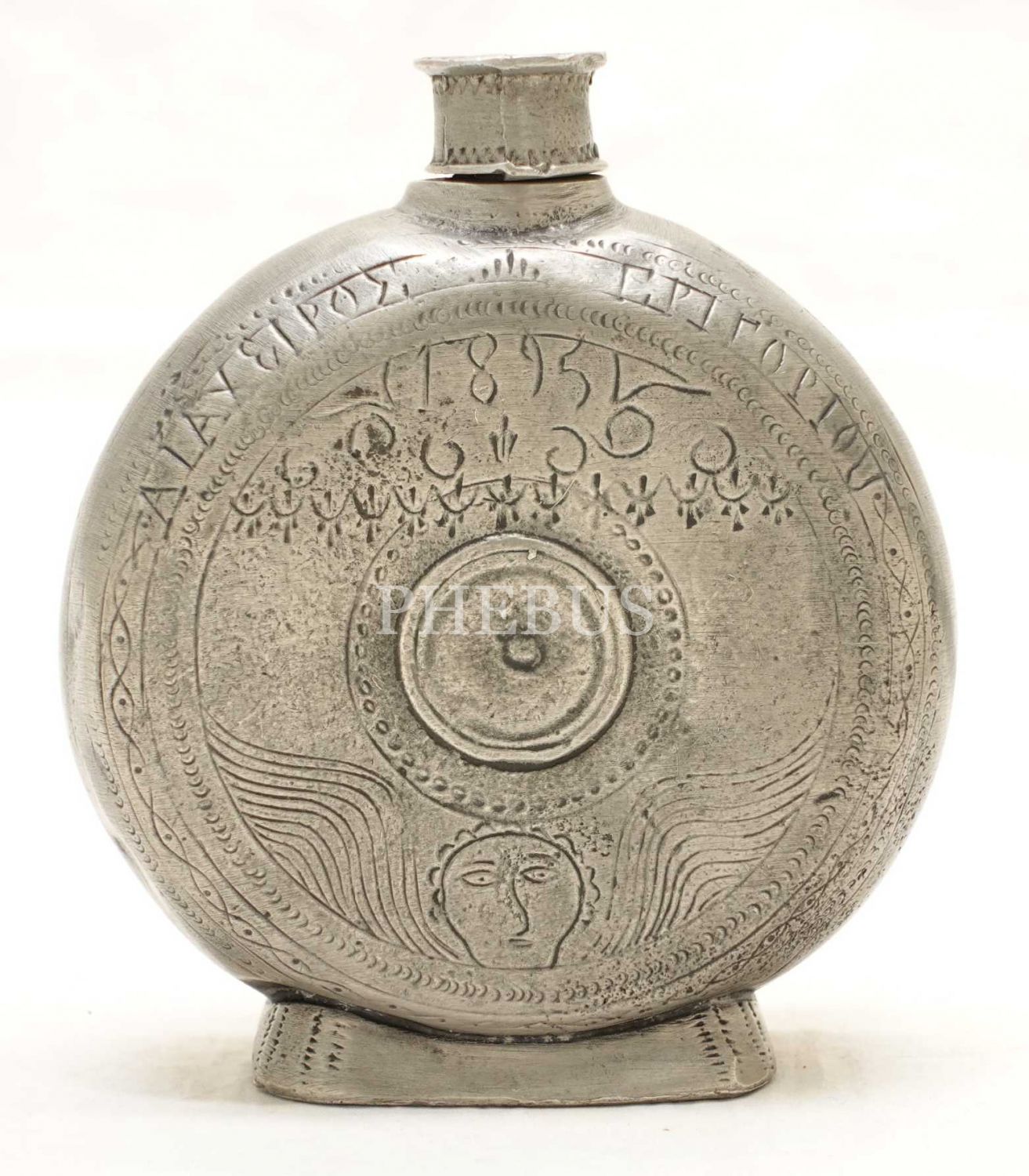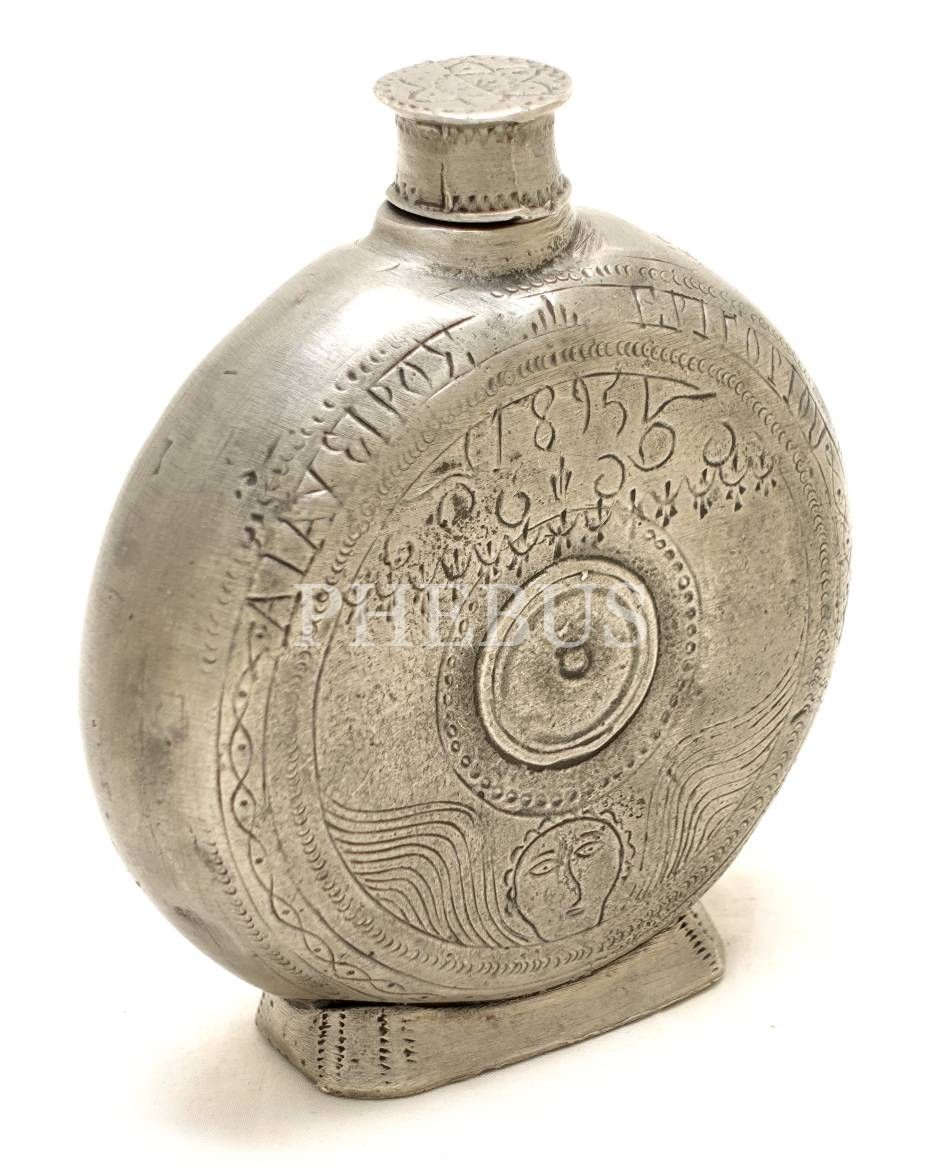 Rumca yazılı ve kalem işçilikli damgalı matara, 21x4 cm