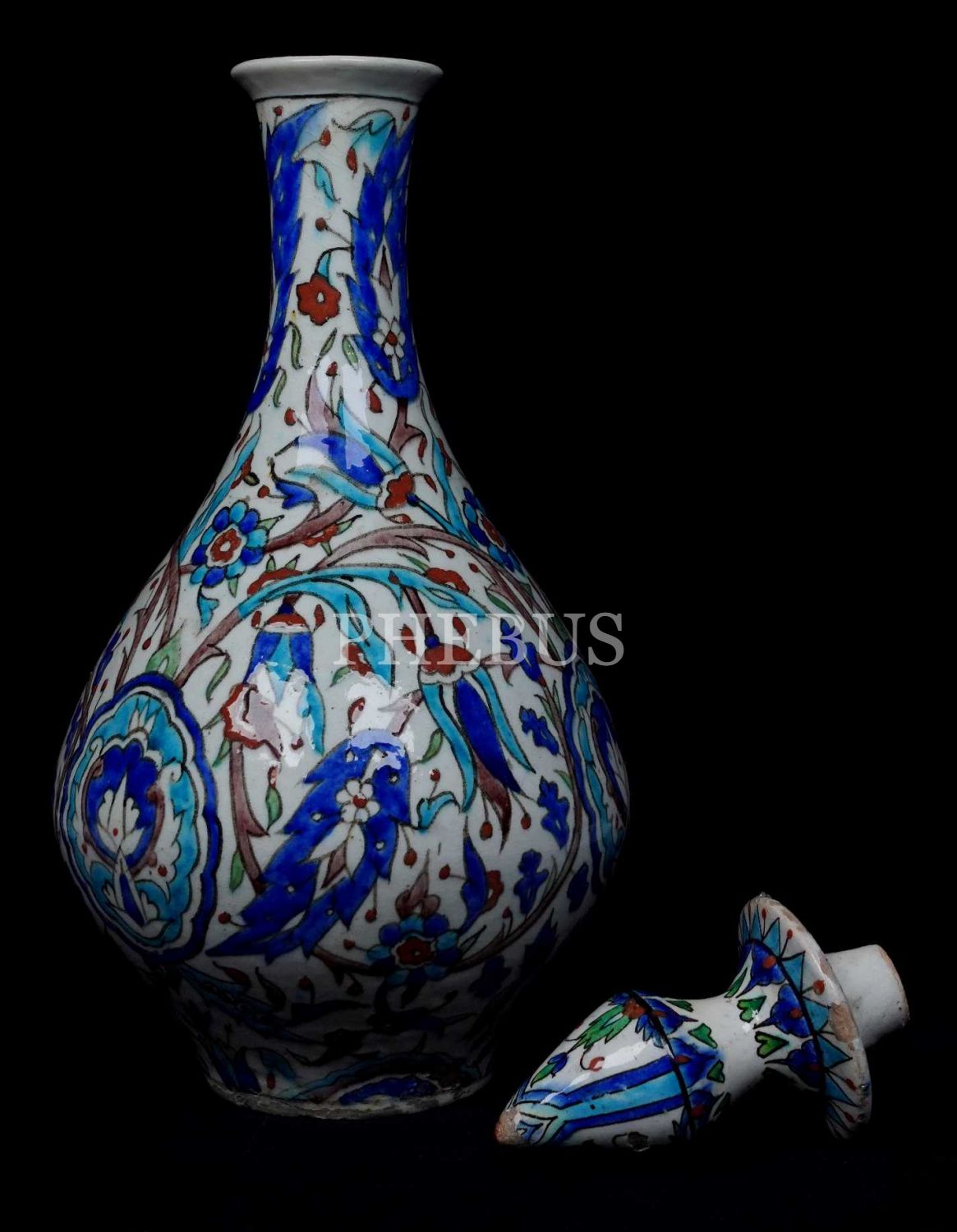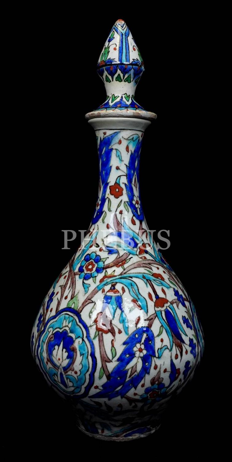 19. yüzyıl Kütahya imalatı kapaklı sürahi, 40cm