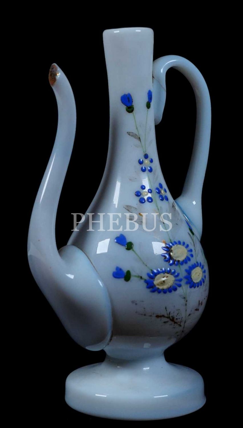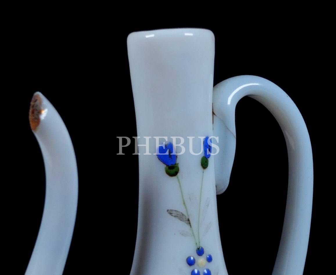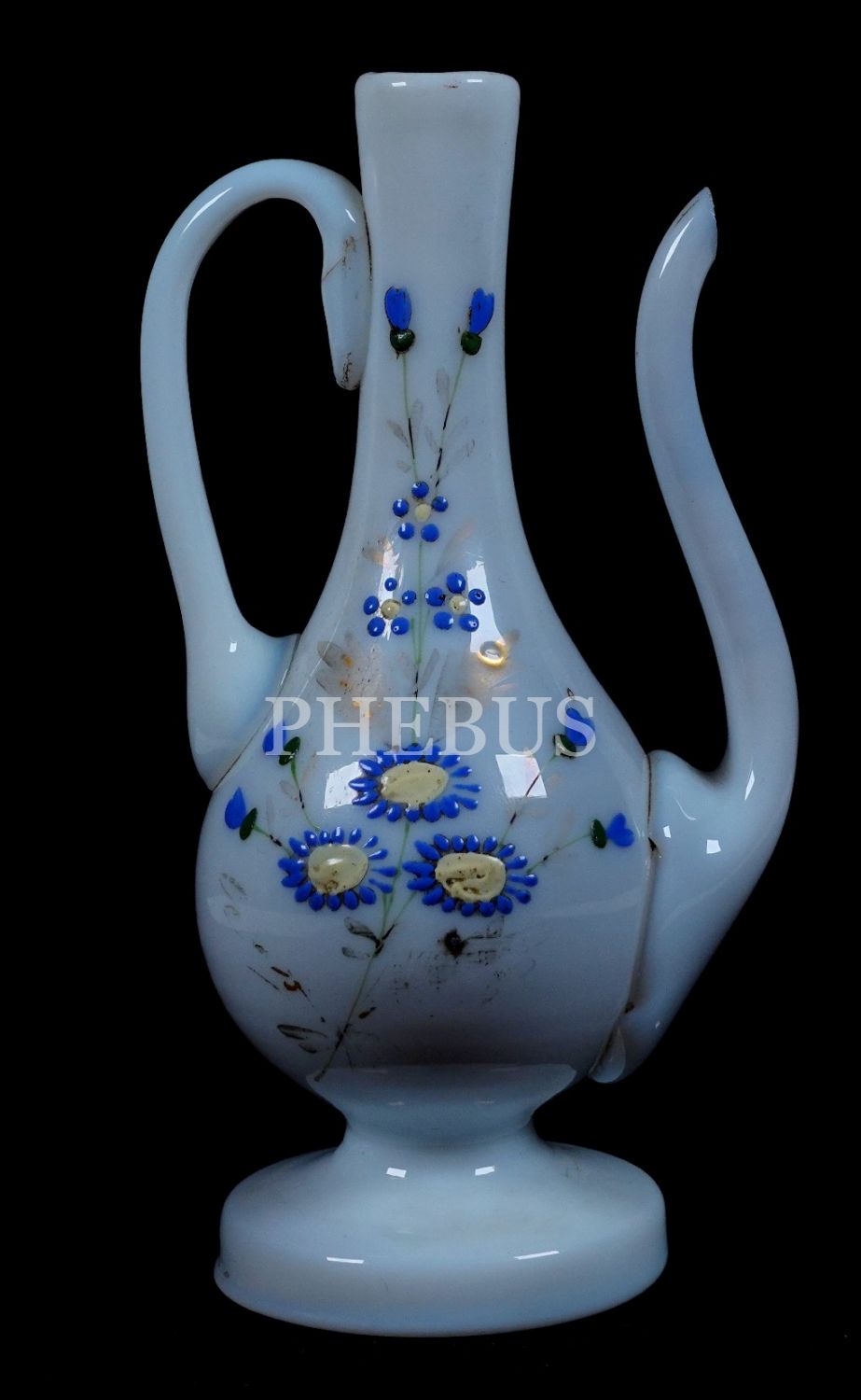 19 yüzyıl Beykoz imalatı, opalin üzeri bitki motifleriyle bezeli ibrik, 18 cm