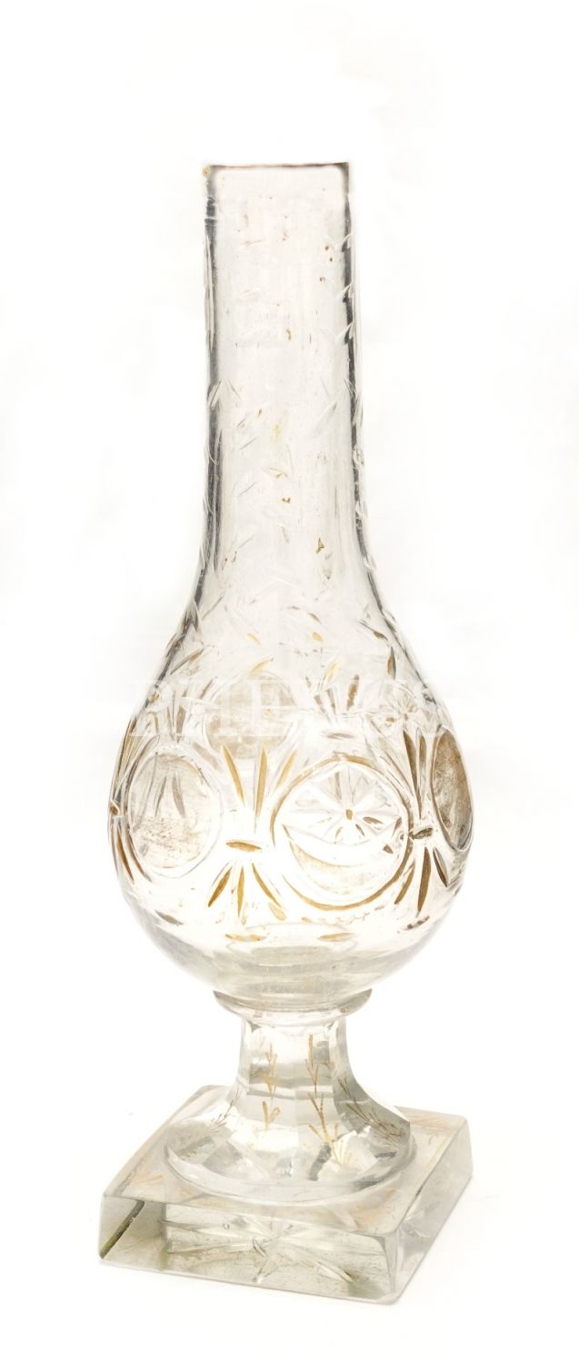 Kesme camdan mamul, altın yaldız ile süslenmiş nargile, yaldızları büyük ölçüde silinmiş vaziyettedir, 30 cm