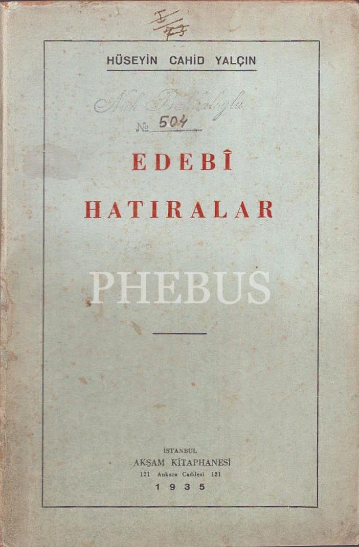 EDEBİ HATIRALAR, Hüseyin Cahid Yalçın, İstanbul 1935, Akşam Kitaphanesi, 187 sayfa...