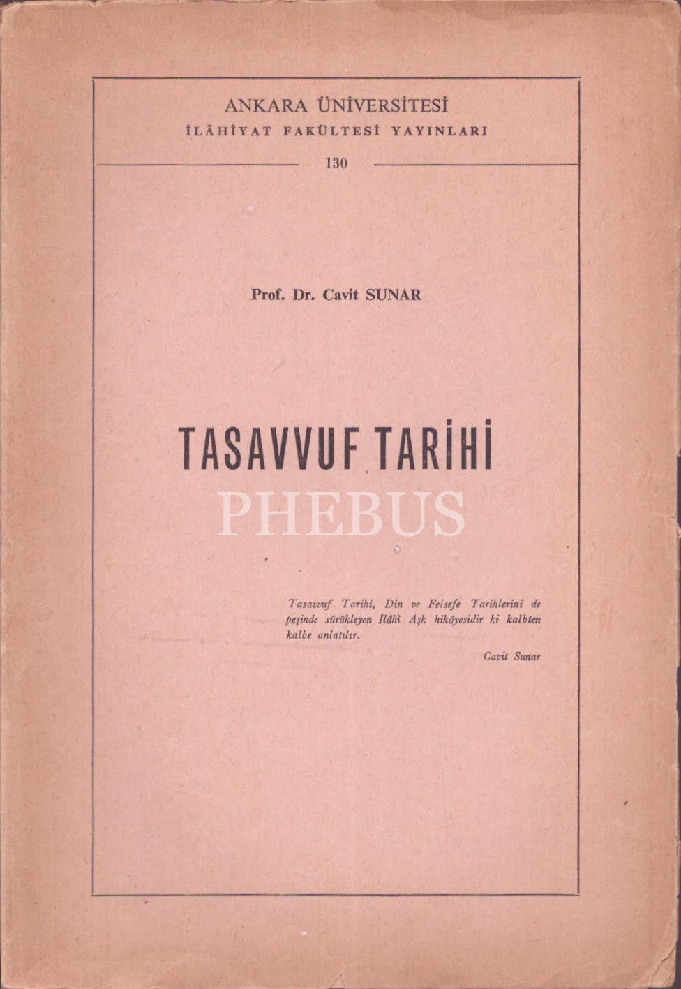 TASAVVUF TARİHİ, Prof.Dr.Cavit Sunar, Ankara 1975, Ankara Üniversitesi İlahiyat Fakültesi Yayınları, 228 sayfa...