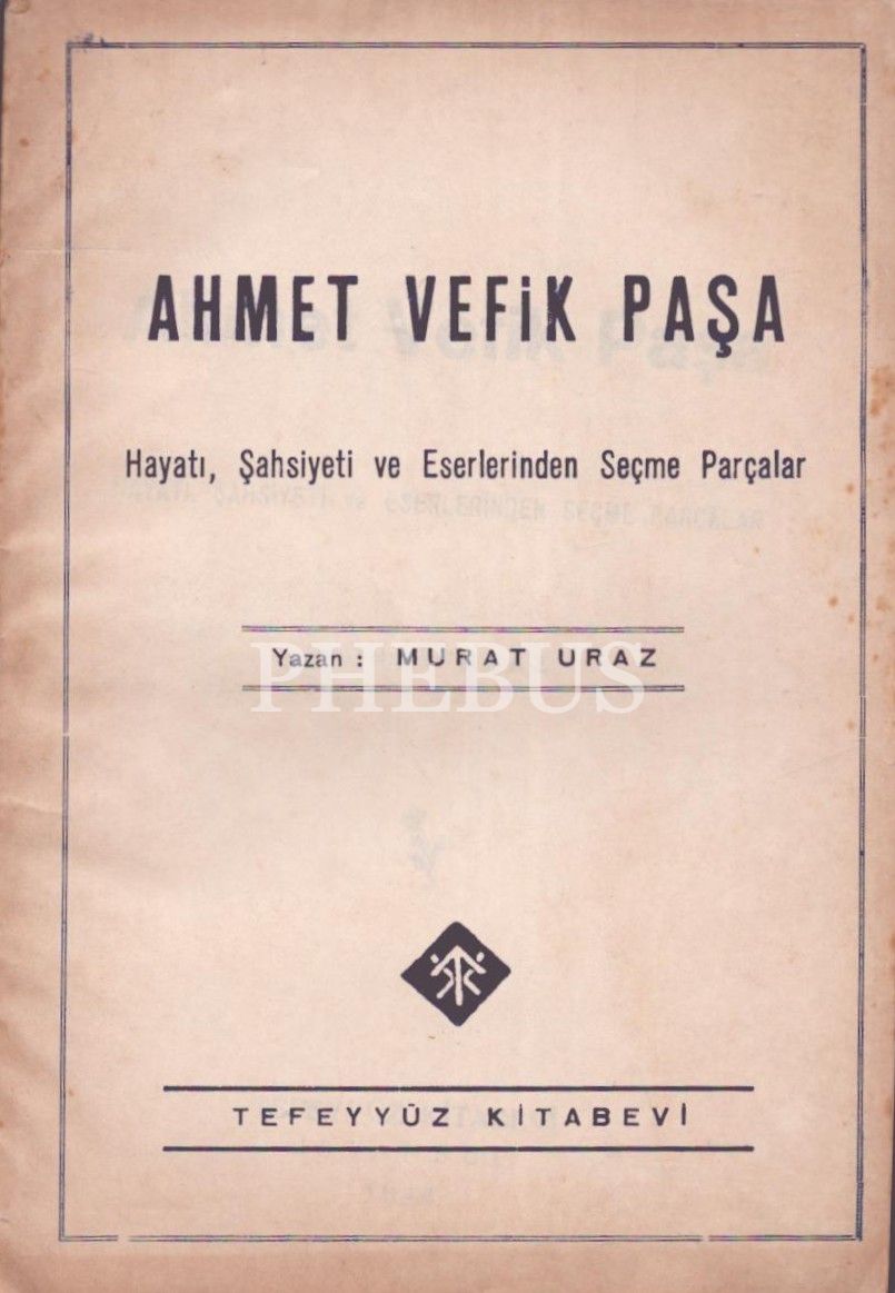 AHMET VEFİK PAŞA (Hayatı, Şahsiyeti ve Eserlerinden Seçme Parçalar), Murat Uraz, İstanbul 1944, Tefeyyüz Kitabevi, 53 sayfa...
