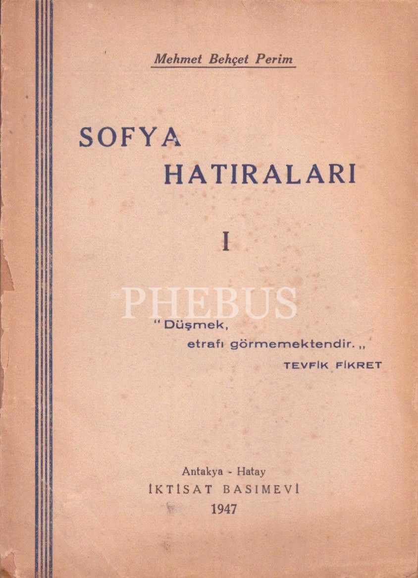 SOFYA HATIRALARI I, Mehmet Behçet Perim, Antakya/Hatay 1947, İktisat Basımevi, 32 sayfa...