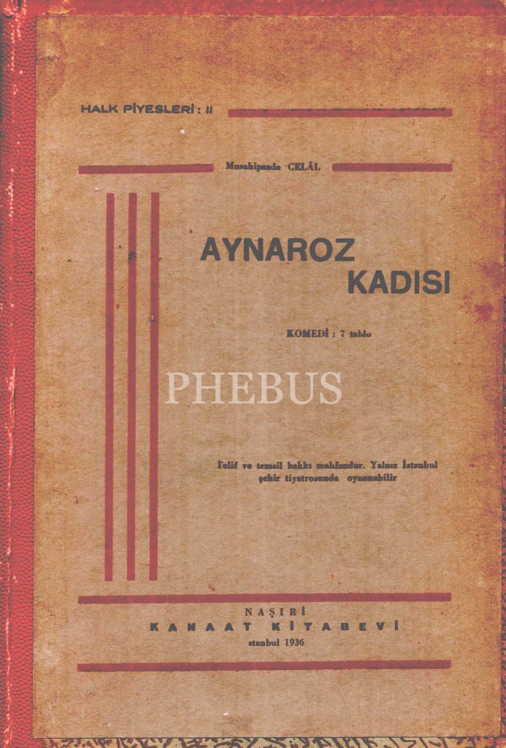 Musahipzade Celal´in Halk Piyesleri: II - AYRANOZ, III - ATLI ASSES, IV - BALABAN AĞA, V - İSTANBUL EFENDİSİ, VI - GÜL VE GÖNÜL, VII - DEMİRBAŞ ŞARL, VIII - FERMANLI DELİ HAZRETLERİ, IX - KAŞIKÇILAR, İstanbul 1936, Kanaat Kitabevi...