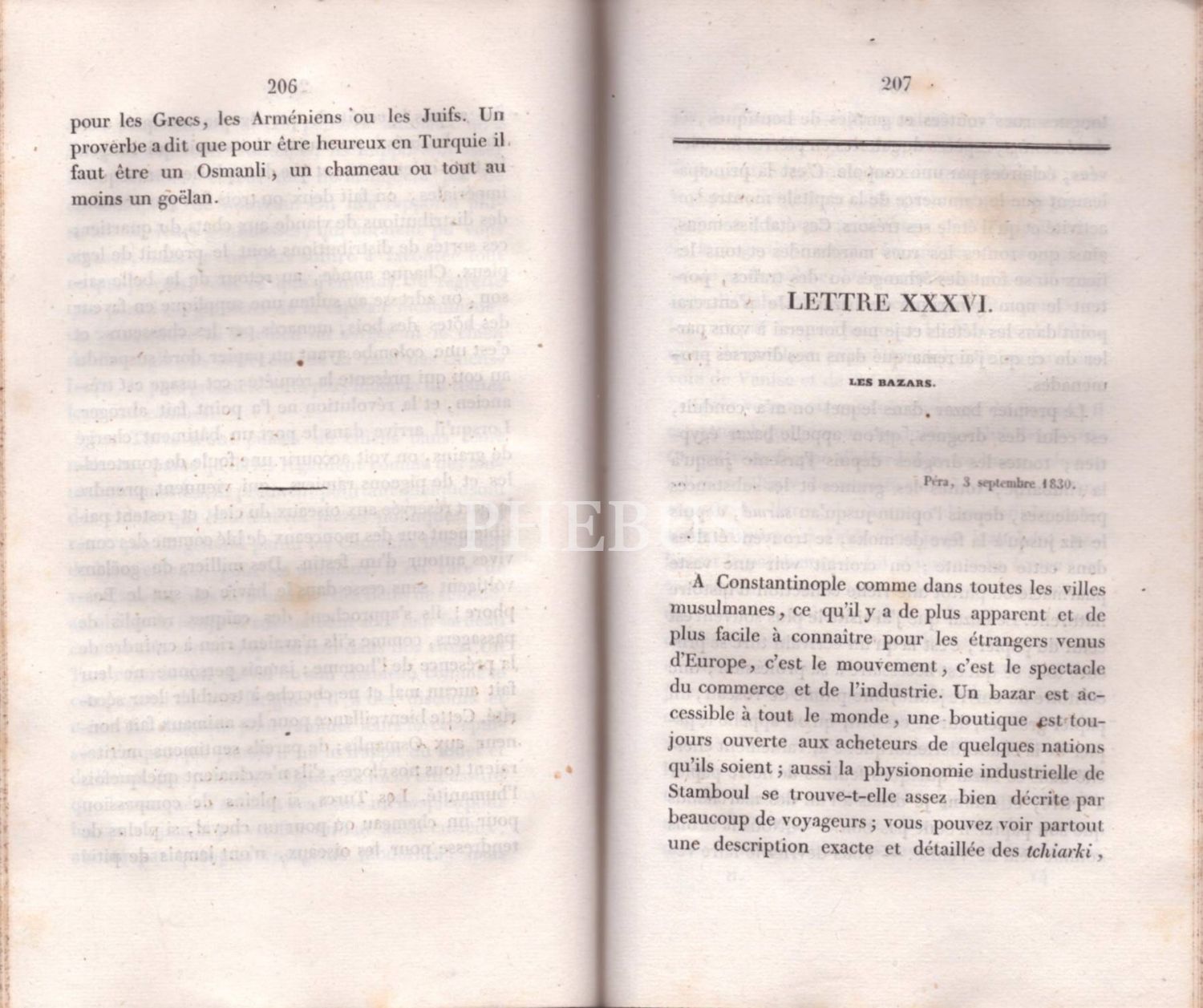 Haçlı Seferleri´ne dair bir çalışma için 1830-31´de seferlerin güzergahını takip ederek Küçük Asya topraklarına gelen Fransız tarihçiler Joseph-François Michaud ile Jean Joseph François Poujoulat, Paris´e döndüklerinde bu seyahatleri esnasında birbirlerine yazdıkları mektupları 7 cilt halinde kitaplaştırmışlardır. Müzayedemizde sunduğumuz kitap, bu serinin 2. cildidir.
