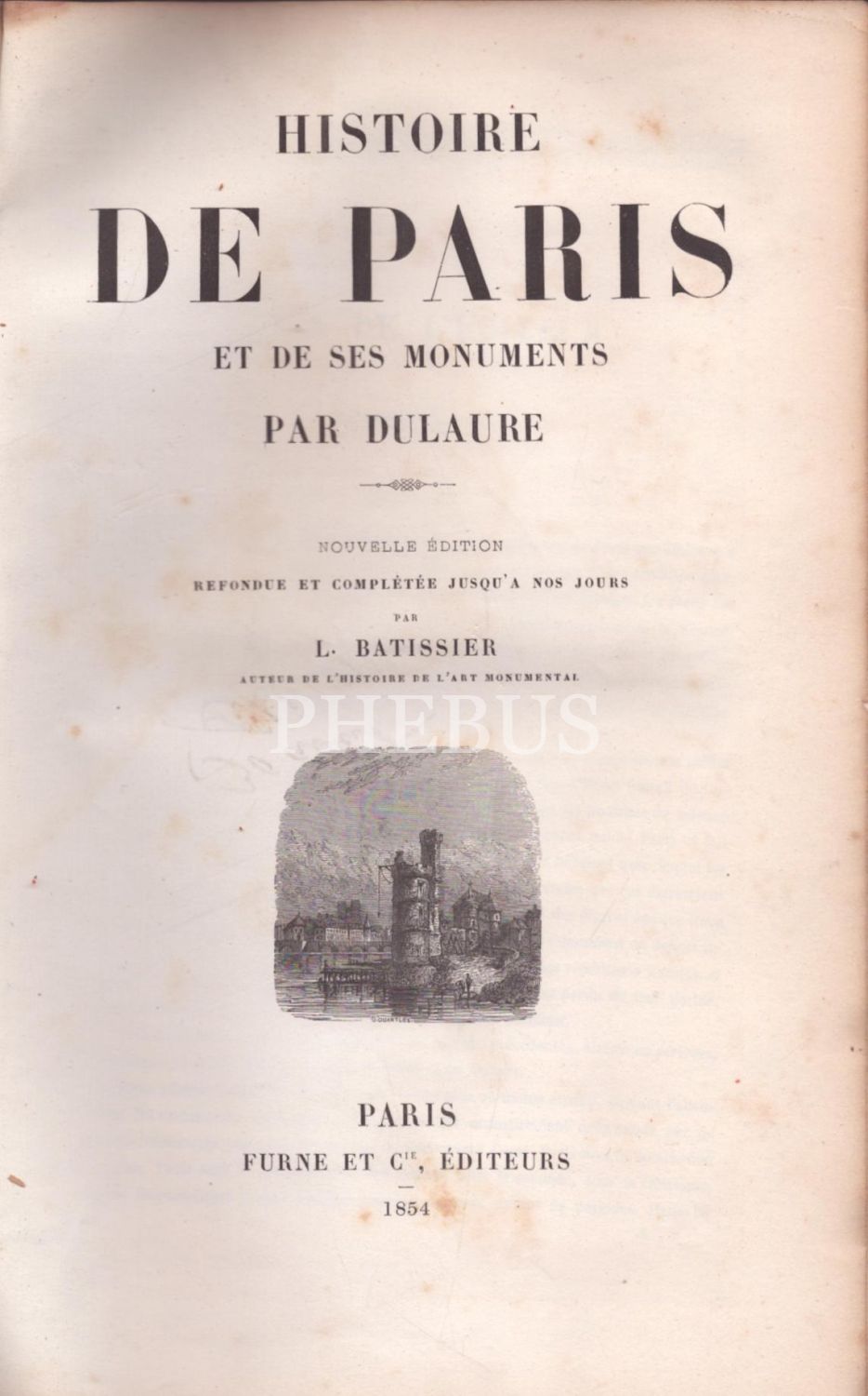 HISTOIRE DE PARİS ET DE SES MINUMENTS PAR DULAURE, L. Batıssıer, Furne and Co, Paris 1854, 662 s., 18x27 cm
