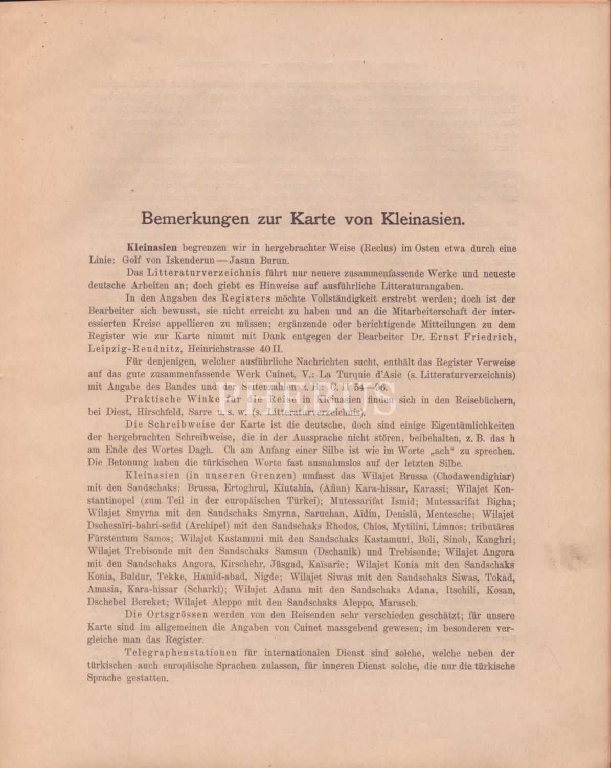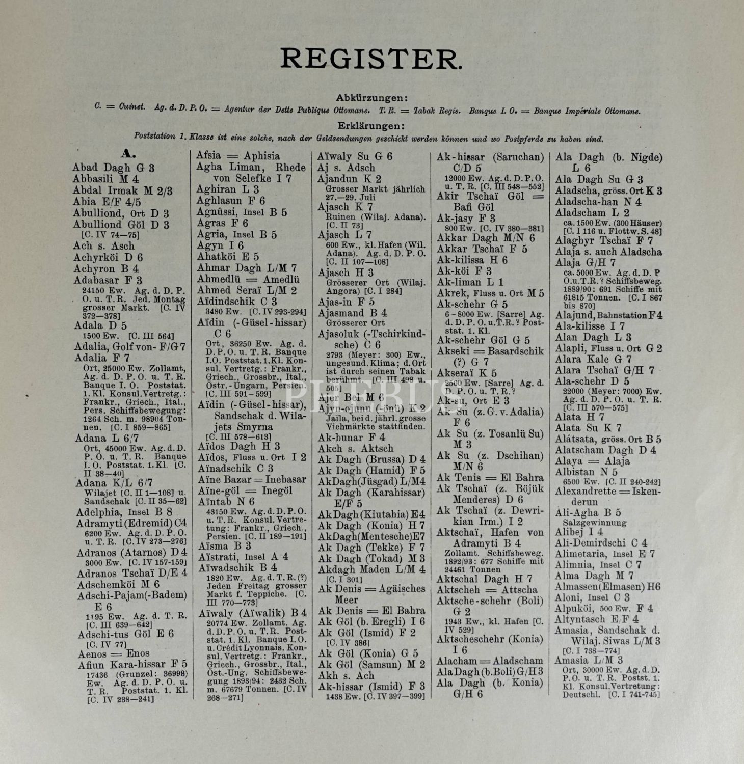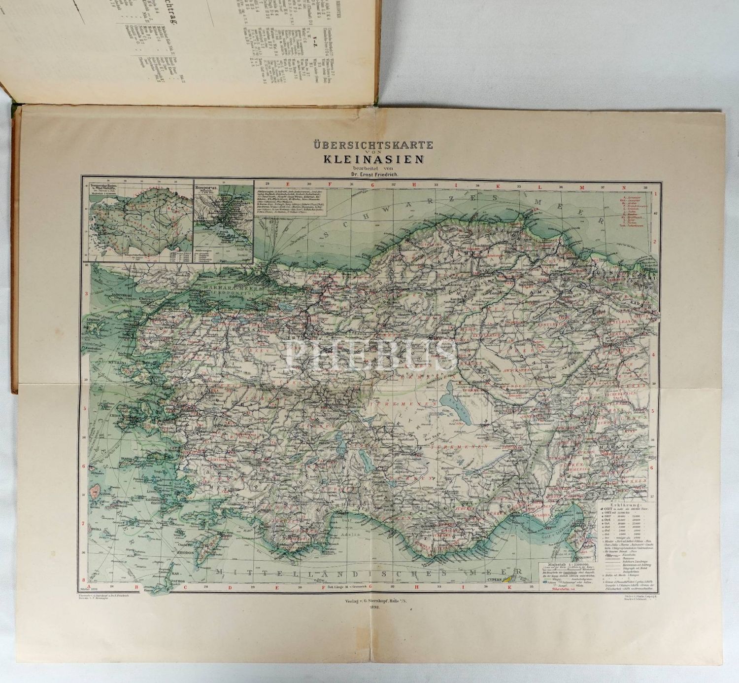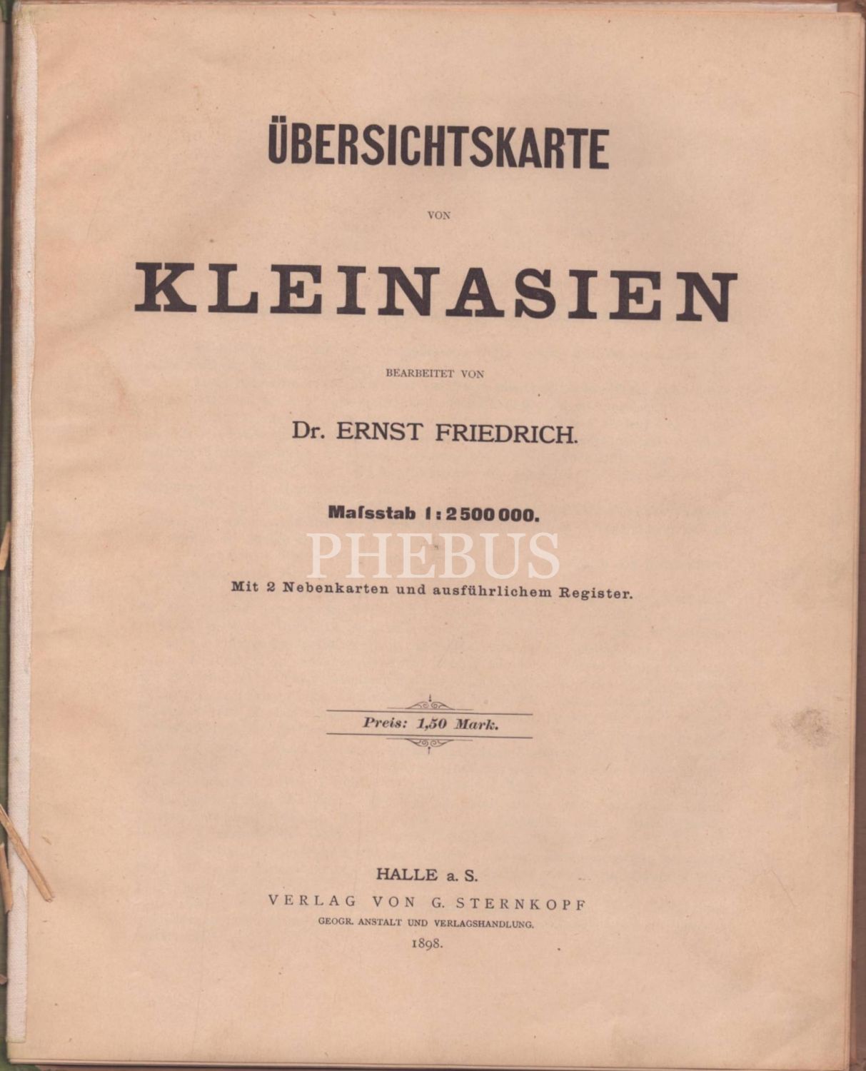 ÜBERSICHTSKARTE VON KLEINASIEN [Küçük Asya Haritasına Genel Bakış], Dr. Ernst Friedrich, Verlag Von G. Sternkopf, 1898, 16 sayfa indeks + 1 adet katlanır harita, 23x28