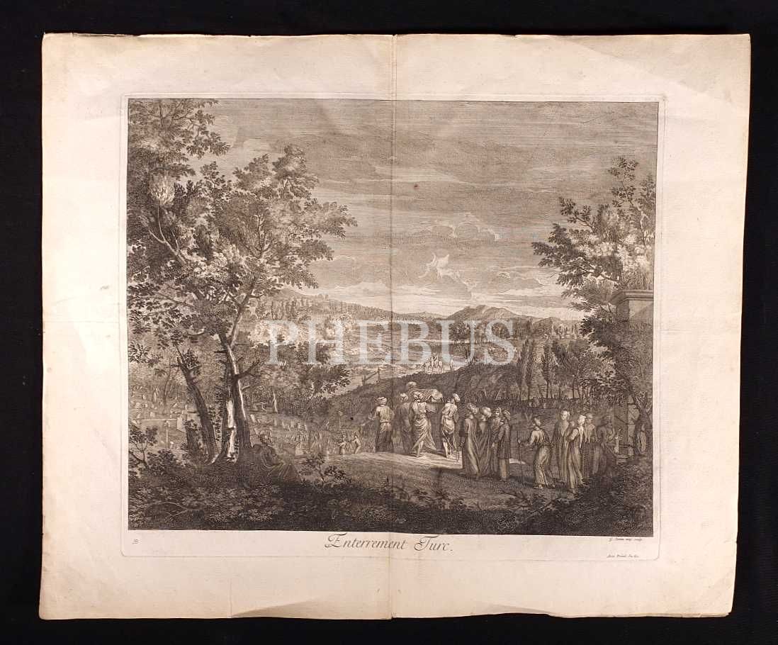 Enterrement Turc [Türk Cenazesi] taş baskı gravür, Jean-Baptiste Scotin, 49x59 cm