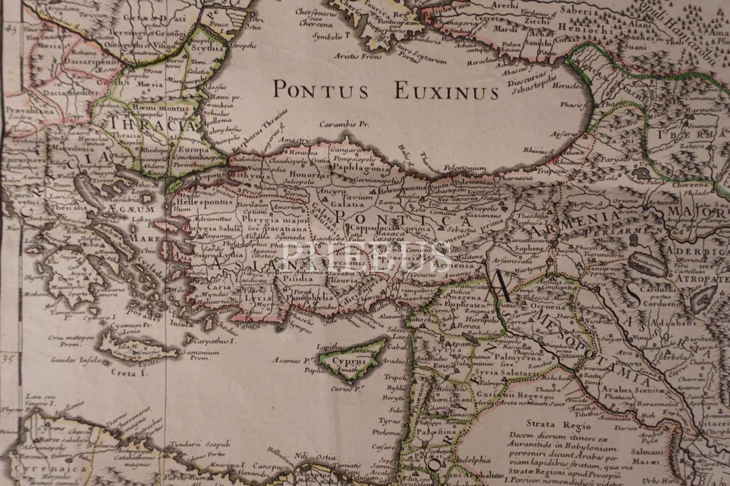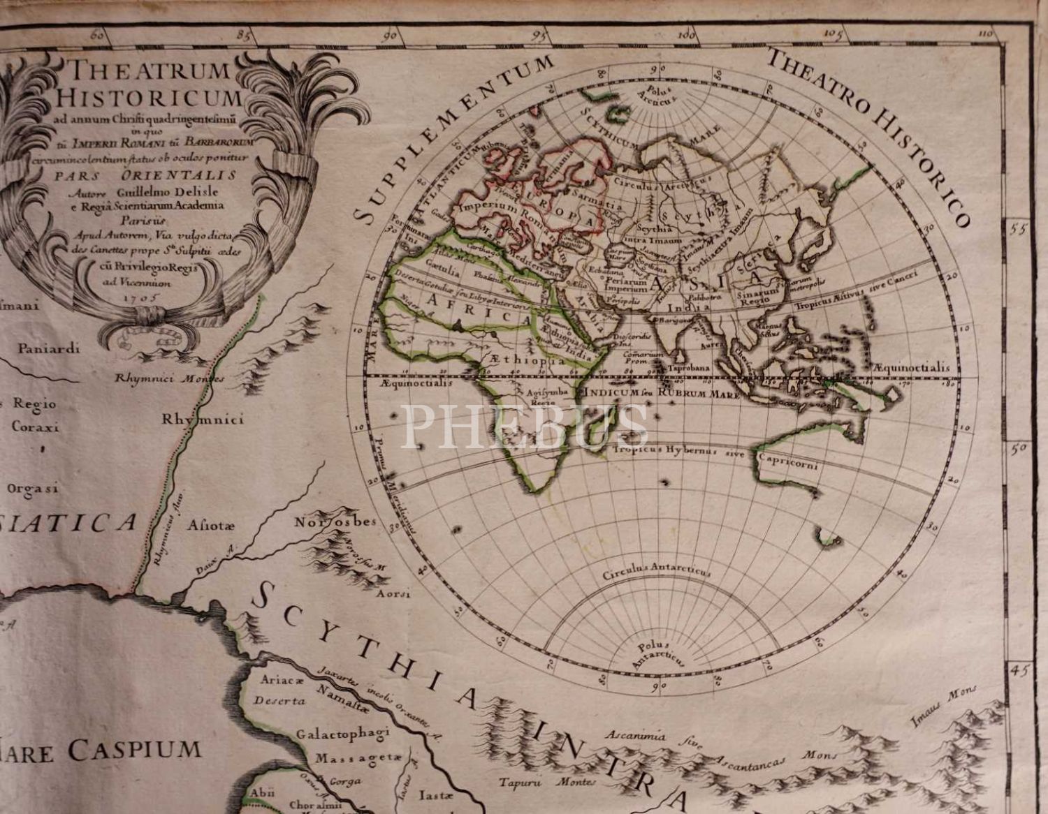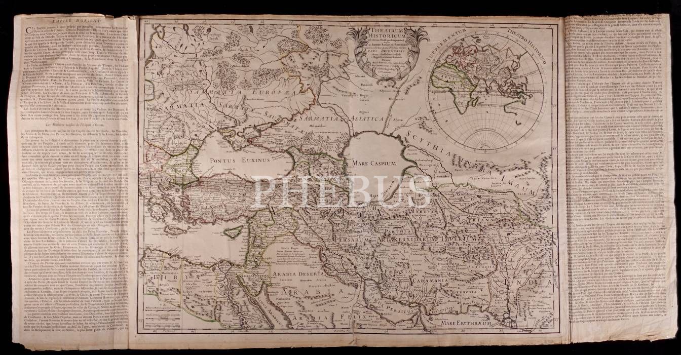 Latince "İsa´nın Dört Yüzüncü Yılı İçin Tarihi Tiyatro" başlıklı "Doğu" haritası, Guillaume Delisle, 1705, açıklama kulakçıklarıyla birlikte 101x51 cm