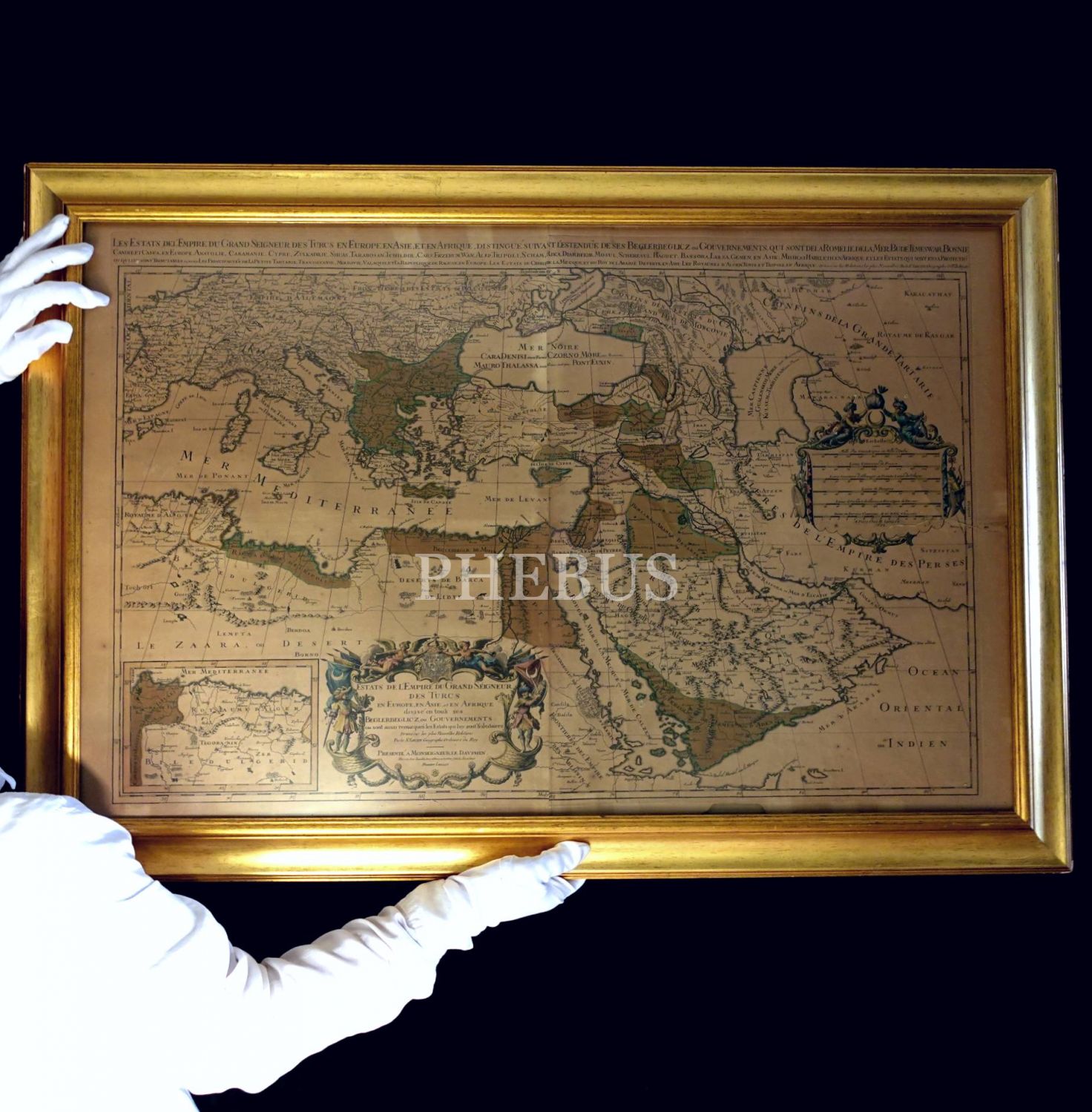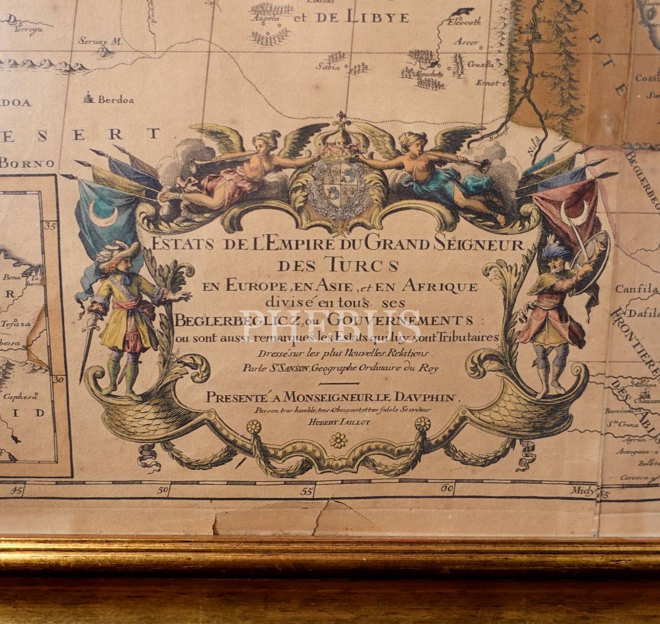 Fransızca Osmanlı İmparatorluğu ile imparatorluğa bağlı mülklerin görüldüğü elle renklendirilmiş 1686 tarihli harita, Alexis-Hubert Jaillot, 105x73 cm