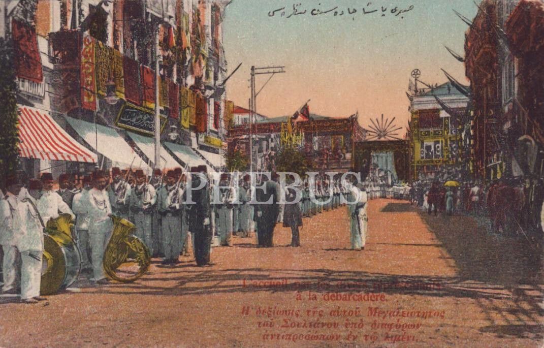 Selanik´i ziyaret eden Sultan Mehmed Reşad´ı karşılayacak askerler, 1911, ed. D. Sonides, Salonique, 9x14 cm