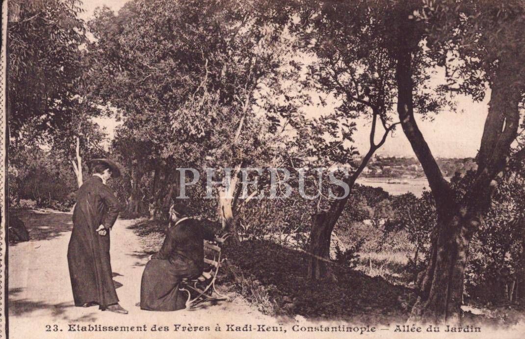 Bromür baskı Kadıköy - Moda "Bahçe Yolu" kartpostalı, Etablissement des Freres a Kadi-Keui, Constantinople - Allee du Jardin, 9x14 cm