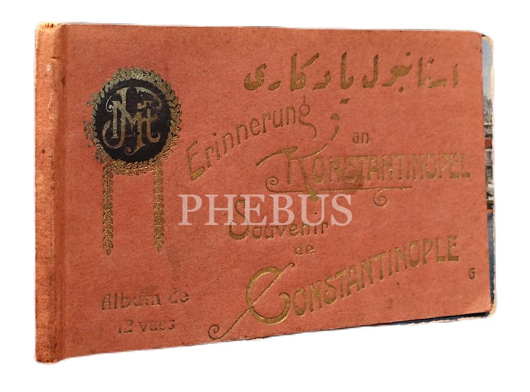Osmanlıca-Almanca-Fransızca "İstanbul Yadigârı" kartpostal albümü, "Souvenir de Constantinople", 12 kartpostallı, 9x14 cm