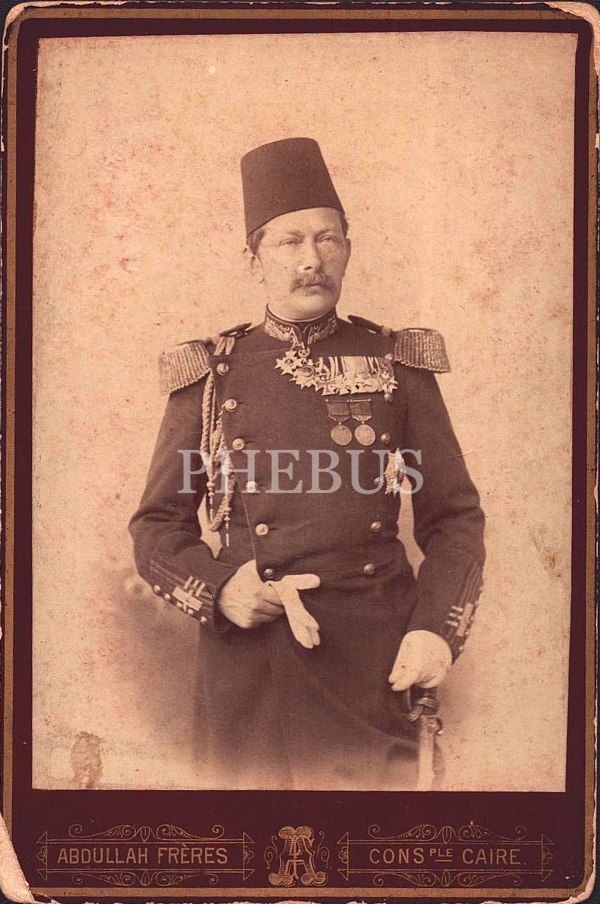 Ordu modernizasyonu için girdiği Osmanlı hizmetinde mareşalliğe kadar yükselen Prusyalı subay Colmar Freiherr von der Goltz’un [Golç Paşa] stüdyo hatıra kabin fotoğrafı, Abdullah Freres (Constantinople), 11x17 cm
