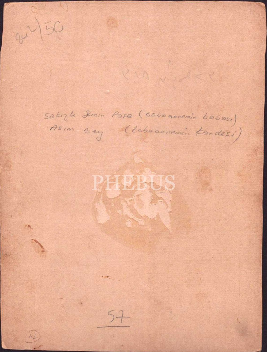 Fotoğrafın arka yüzünde "Sakızlı Emin Paşa (Babaannemin babası) - Asım Bey (Babaannemin kardeşi)" notu yer almaktadır.