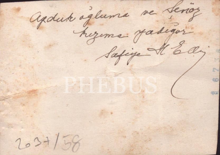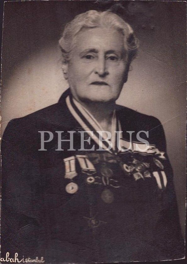 Türkiye´de modern hemşireciliğin öncü isimlerinden biri olan Safiye Hüseyin Elbi´nin ithaflı ve imzalı stüdyo hatıra fotoğrafı, Foto Sabah (İstanbul), 8x11 cm