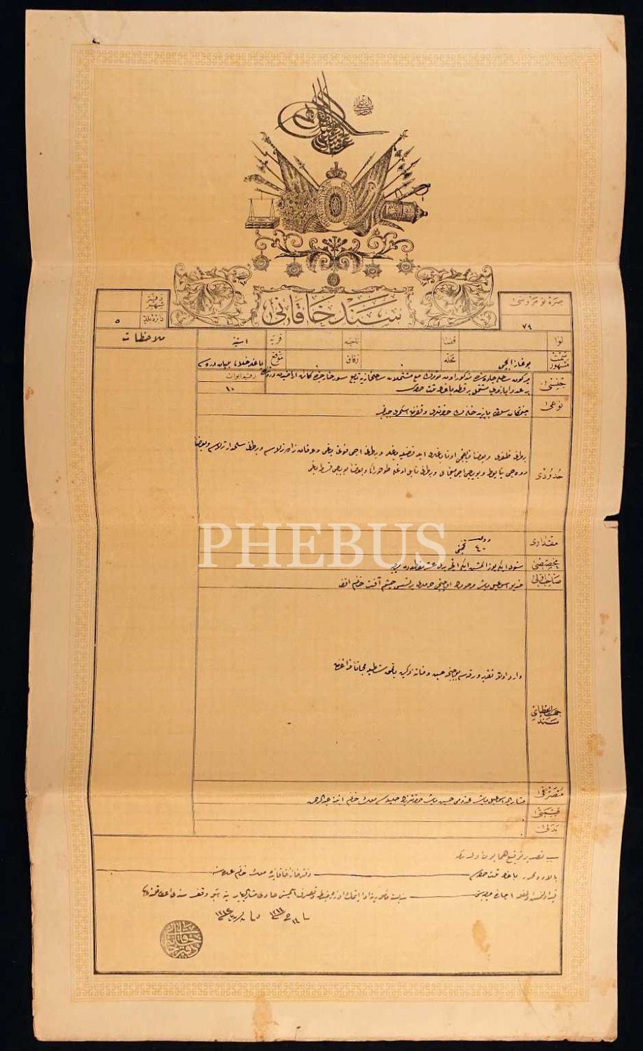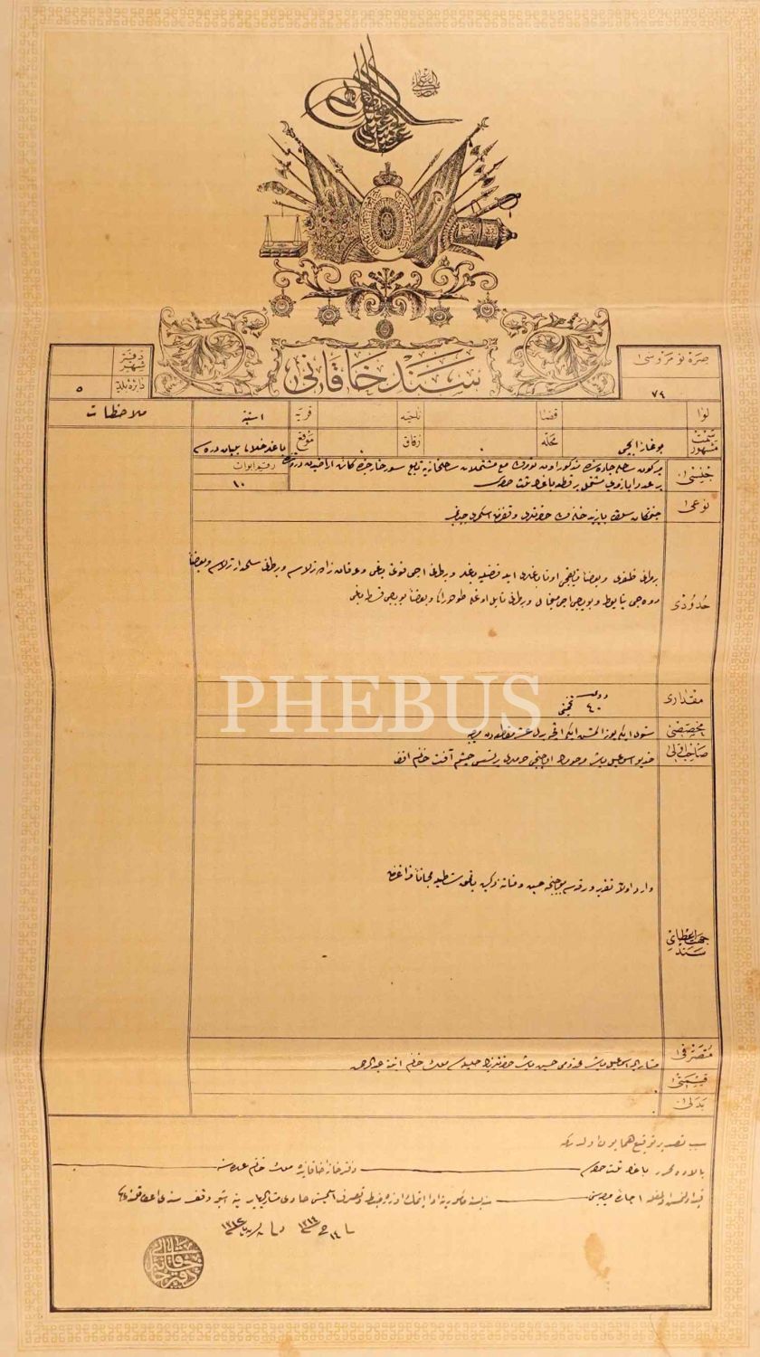 1312 seneli Mısır Hidivi Abbas Paşa´nın eşi divan şairi Çeşm-i Afet Hanım´a ait Sened-i Hakani (Tapu), Osmanlıca, arkası tastiklendiğine dair mühürlü, 33x59 cm...
