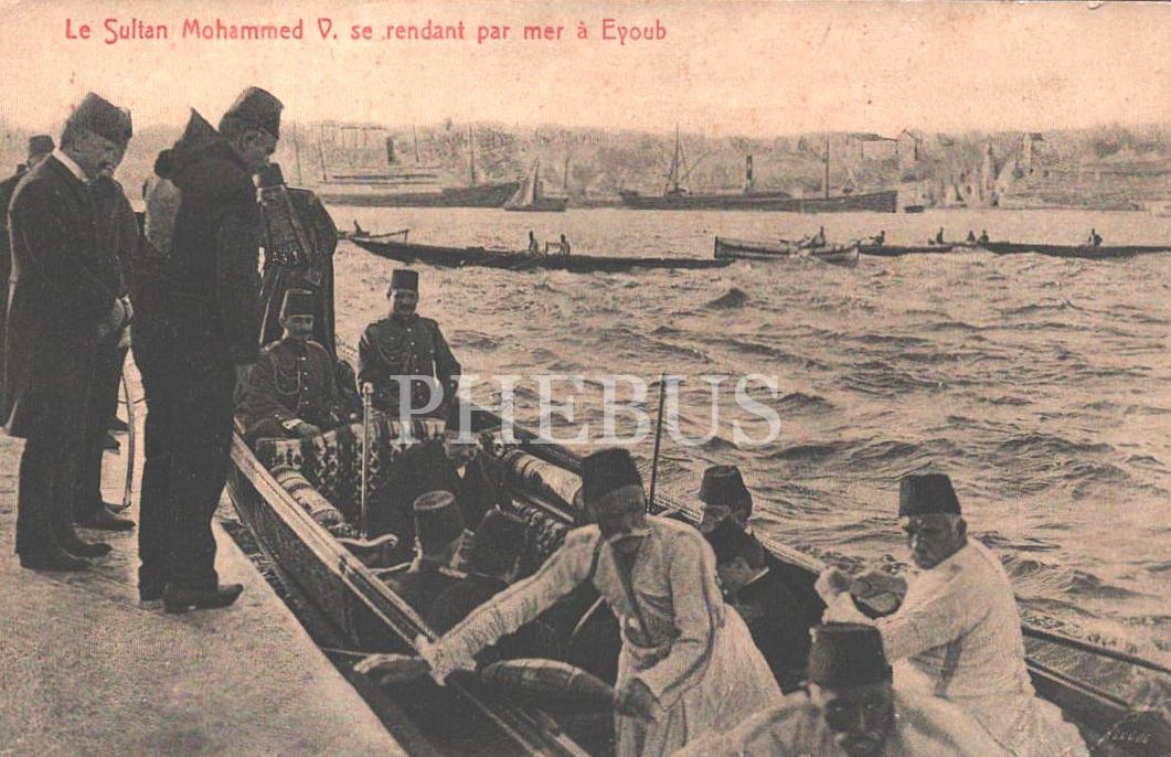 Sultan Mehmed Reşad saltanat kayığı ile Eyüp´e yanaşırken, 9x14 cm