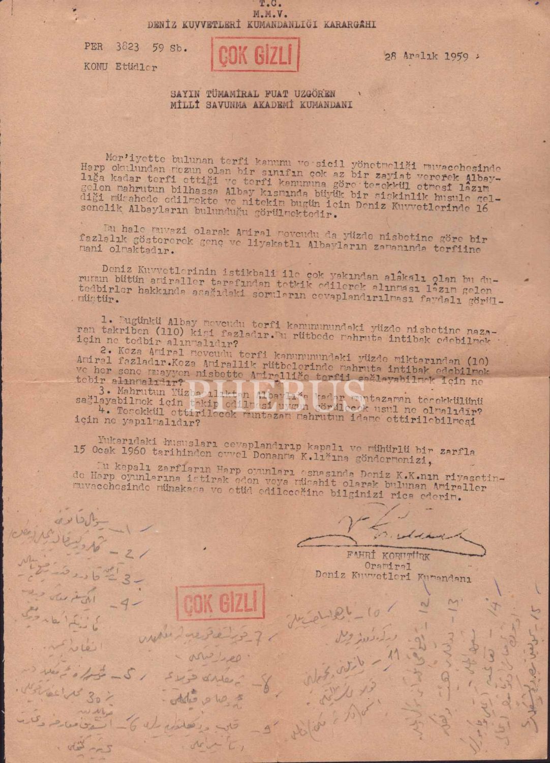 Tüm Amiral Fuat Uzgören, 1921 senesinde Mekteb-i Bahriyeden mezun olmuştur. Türkiye Cumhuriyeti´nin 6. Cumhurbaşkanı Fahri Korutürk ile dönem arkadaşıdır. Türkiye Cumhuriyeti Donanma tarihinde önemli görevler almış ve 1960 ihtilalinde aktif rol almıştır. Bu evrakların içerisinde Fahri Korutürk imzalı, Adnan menderes, Celal Bayar, Fahrettin Kerim Gökay, Kore Askeri Heyeti, Amerikan Askeri Heyeti, Mısır Askeri Heyeti ve dönemin üst düzey rütbelilerinin resimleri bulunmaktadır. Ayrıca Cumhurbaşkanı Fahri Korutürk´ün kendi el yazısı ile "Fuatcığım" hitaplı mektupları, askeri "çok gizli" ibareli mektuplar ve Prof. Dr. Nakibe Üzgören´in şahsi evrakları bulunmaktadır. Siyasi hayatını aydınlatacak Fuat Üzgören´in el yazısyla kaleme aldığı 94 sayfalık hatıratı da mevcuttur.