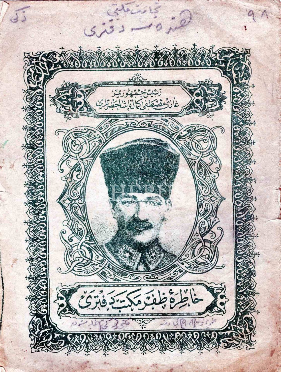 Mustafa Kemal Atatürk kapaklı Hatıra-i Zafer Mekteb Defteri, 15x20 cm...