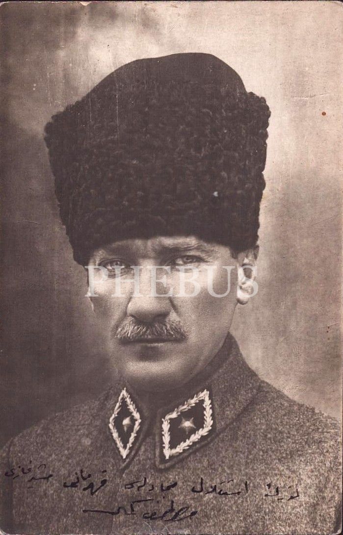 Askeri kıyafet içerisinde Atatürk portresi,Türk İstiklal Mücadelesi Kahramanı Meşhur Gazi Mustafa Kemal yazılı, 9x14 cm...