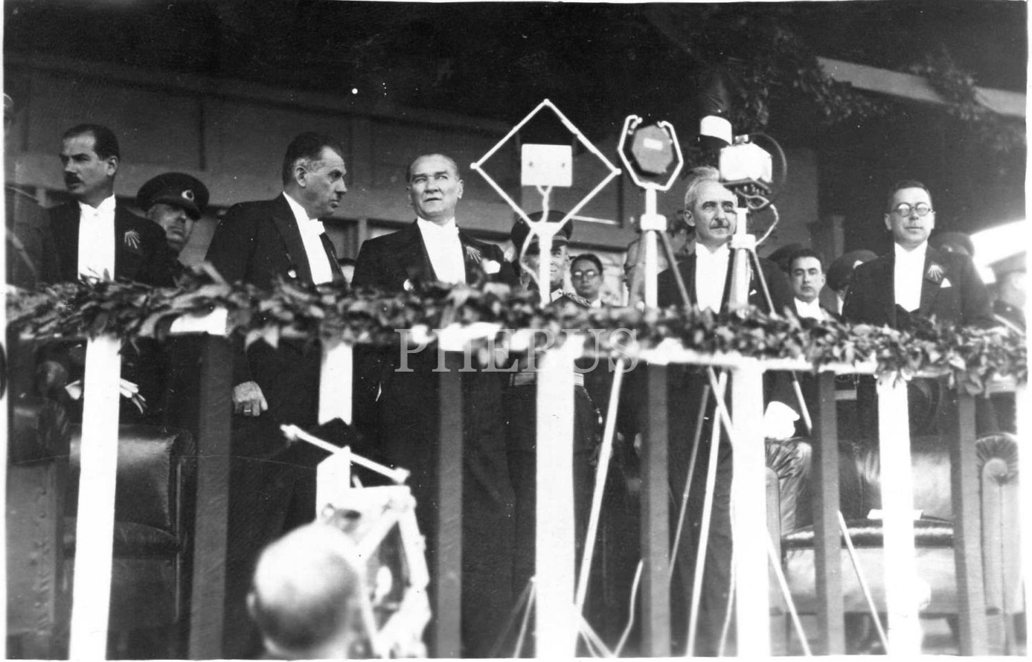 Mustafa Kemal Atatürk, Cumhuriyet´in ilânının 10. yılı kutlamaları vesilesiyle Ankara Hipodromu´nda, 9x14 cm