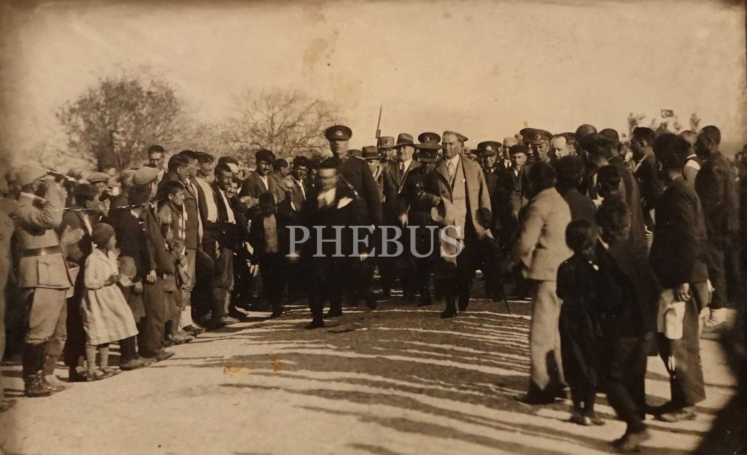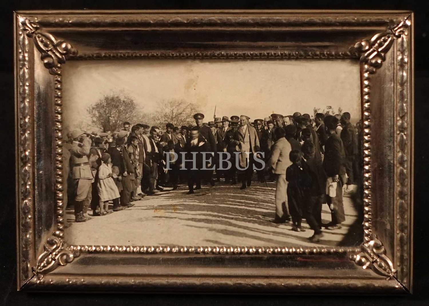Mustafa Kemal Atatürk ve kendisini karşılayan Ezine halkı, 14 Nisan 1934, 9x14 cm, çerçevesiyle birlikte 18x13 cm