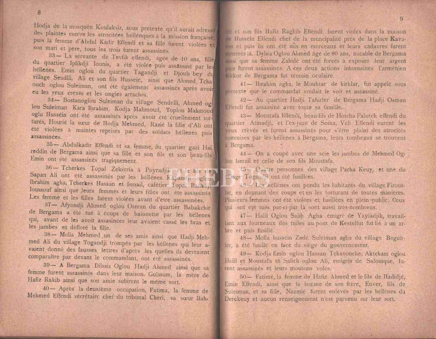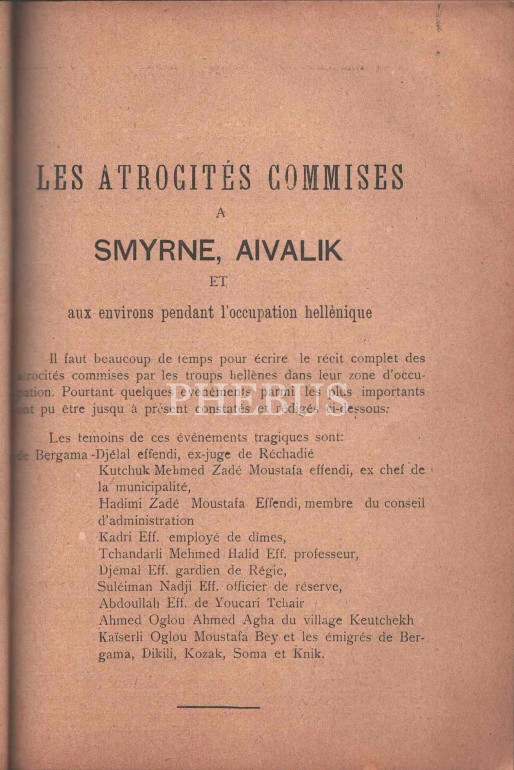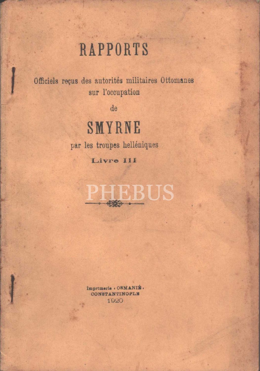 Yunan ordusunun İzmir´i işgaline ilişkin Osmanlı askeri yetkililerinden alınan resmi raporların bir araya getirildiği Fransızca kitap (3. Kitap), Imprimerie "Osmanie", Constantinople - 1920, 28 sayfa, 17x24 cm