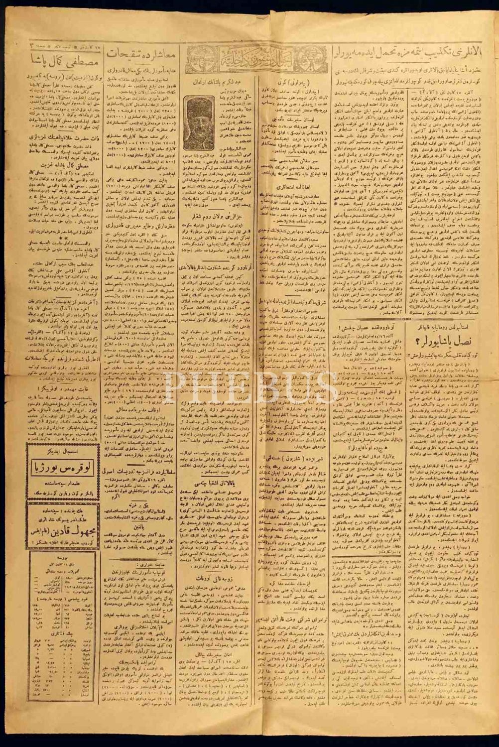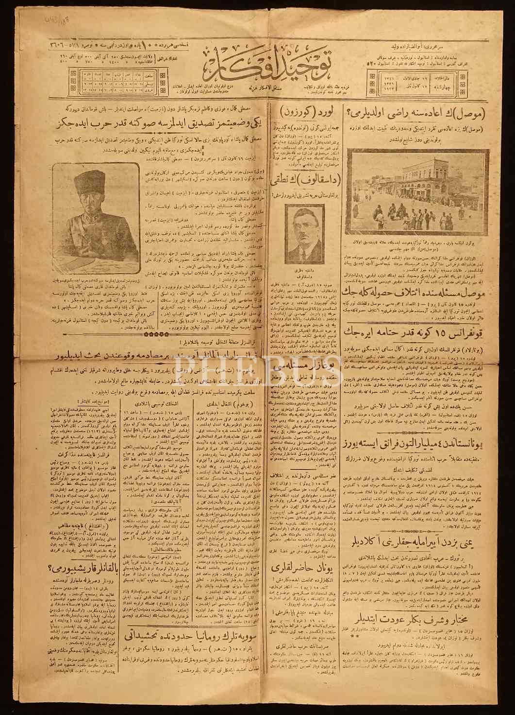 " Yeni vaziyetimiz tasdik edilmezse sonuna kadar harp edeceğiz" manşetli ve Mustafa Kemal Paşa görselli, 29 Cemazeyilevvel 1341 tarihli Tevhid-i Efkar Gazetesi, 4 sayfa, 43x61 cm...