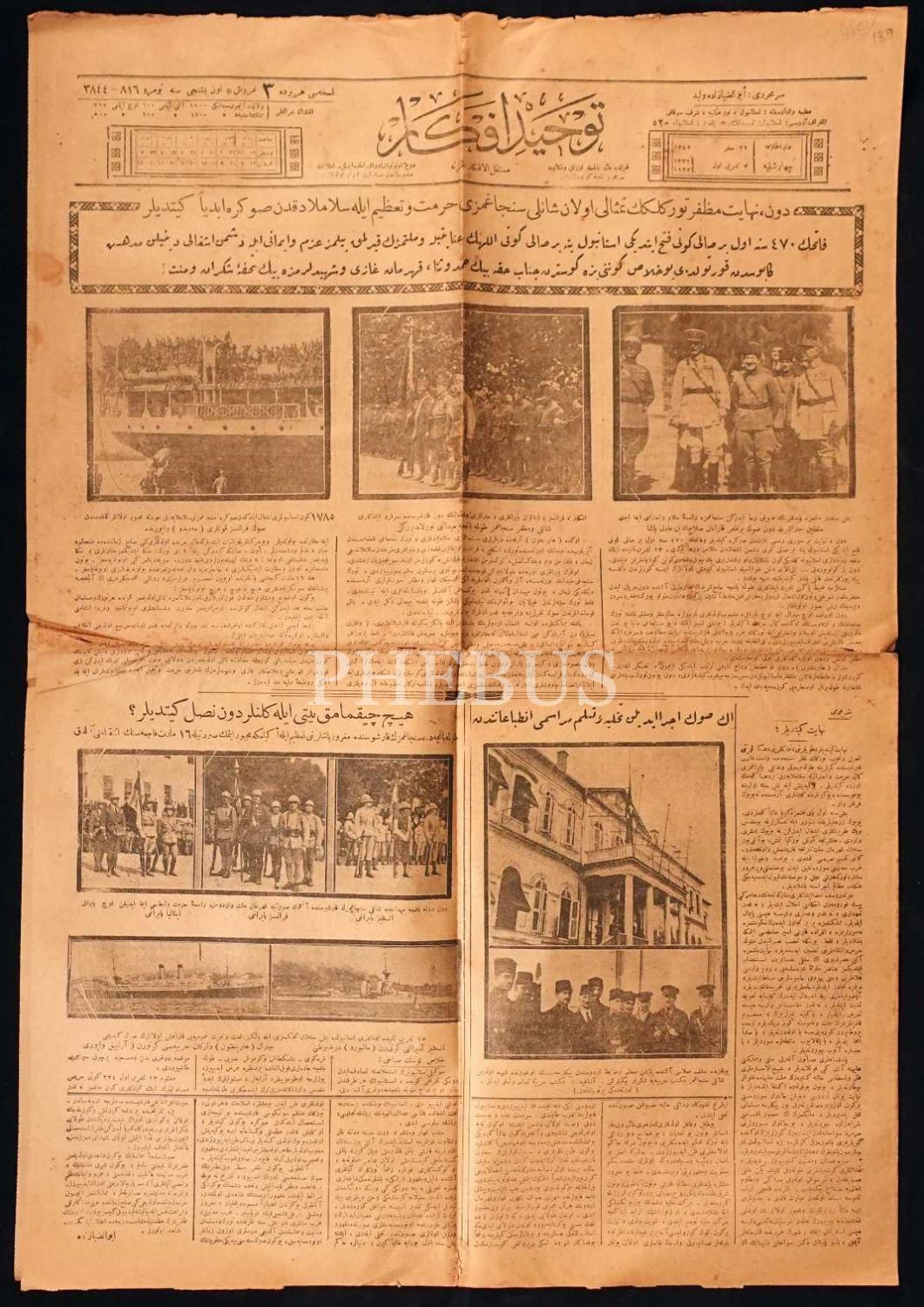 " Dün, nihayet muzaffer Türklüğün temsili olan şanlı sancağımızı hürmet ve tazim ile selamladıktan sonra ebediyyen gittiler" manşetli, 22 Safer 1342 tarihli Tevhid-i Efkar Gazetesi, 4 sayfa, 43x61 cm...