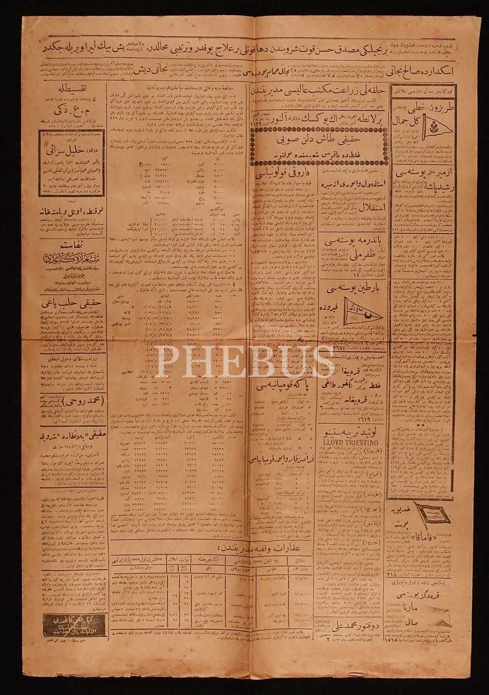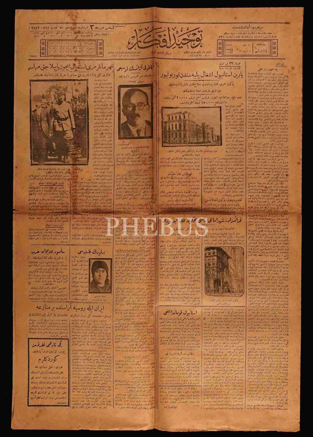 İstanbul´un yarın işgalden kurtulacağını müjdeleyen manşetiyle ve Fransızların kullandığı Maçka silahhanesinin teslim edildiğini gösteren fotoğrafın yer aldığı, 20 Safer 1342 tarihli Tevhid-i Efkar Gazetesi, 4 sayfa, 43x61 cm...