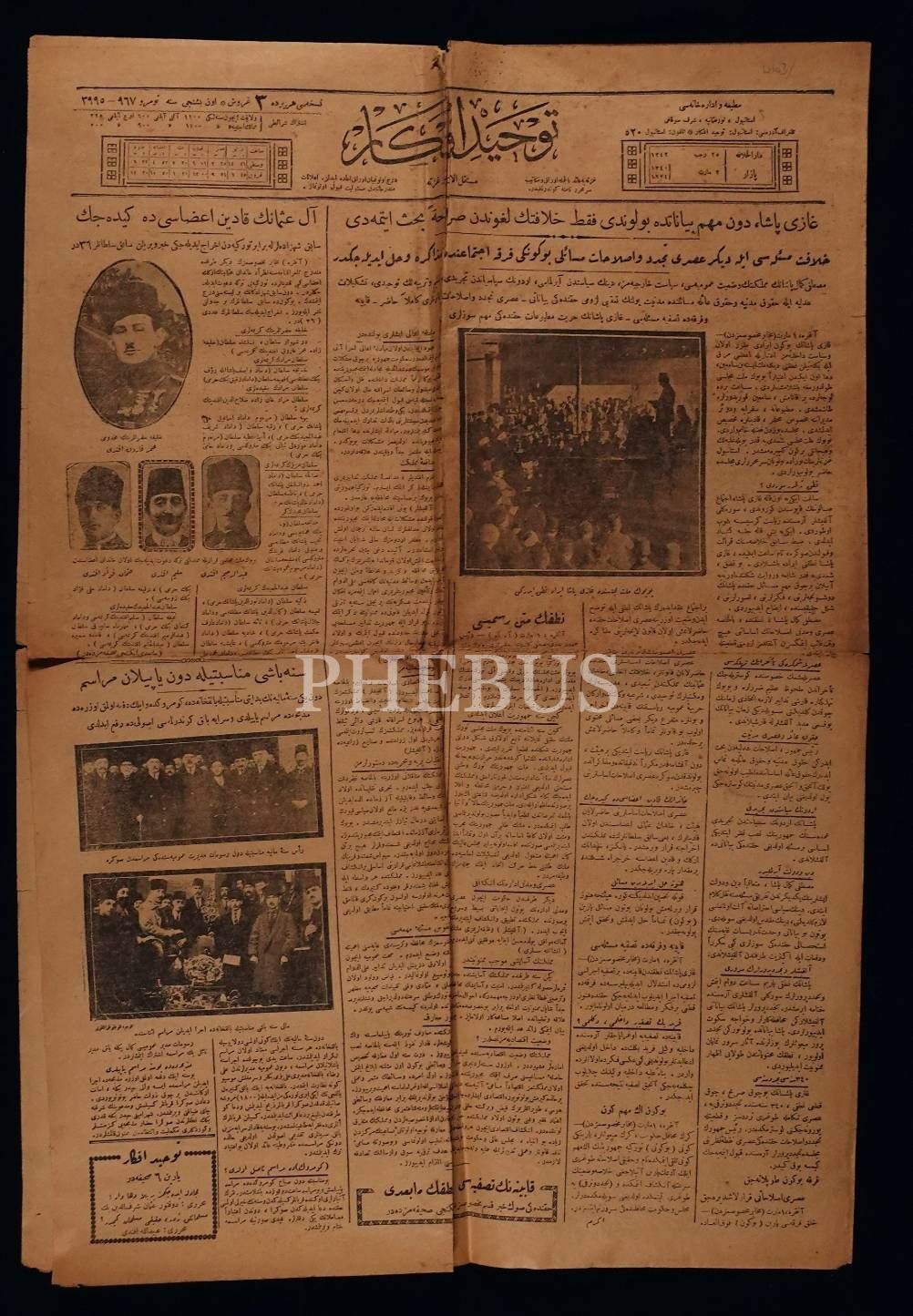 Mustafa Kemal Paşa´nın Büyük Millet Meclisin´de nutuk irad ederken görselli, 25 Recep 1343 tarihli Tevhid-i Efkar Gazetesi, 4 sayfa, 43x61 cm...