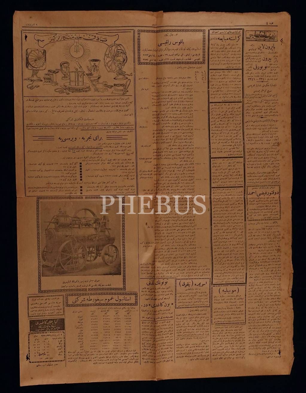 At üzerinde muzaffer Şükrü Naili Paşa görselli, 12 Safer 1342 tarihli, İleri Gazetesi, 4 sayfa, 46x63 cm...