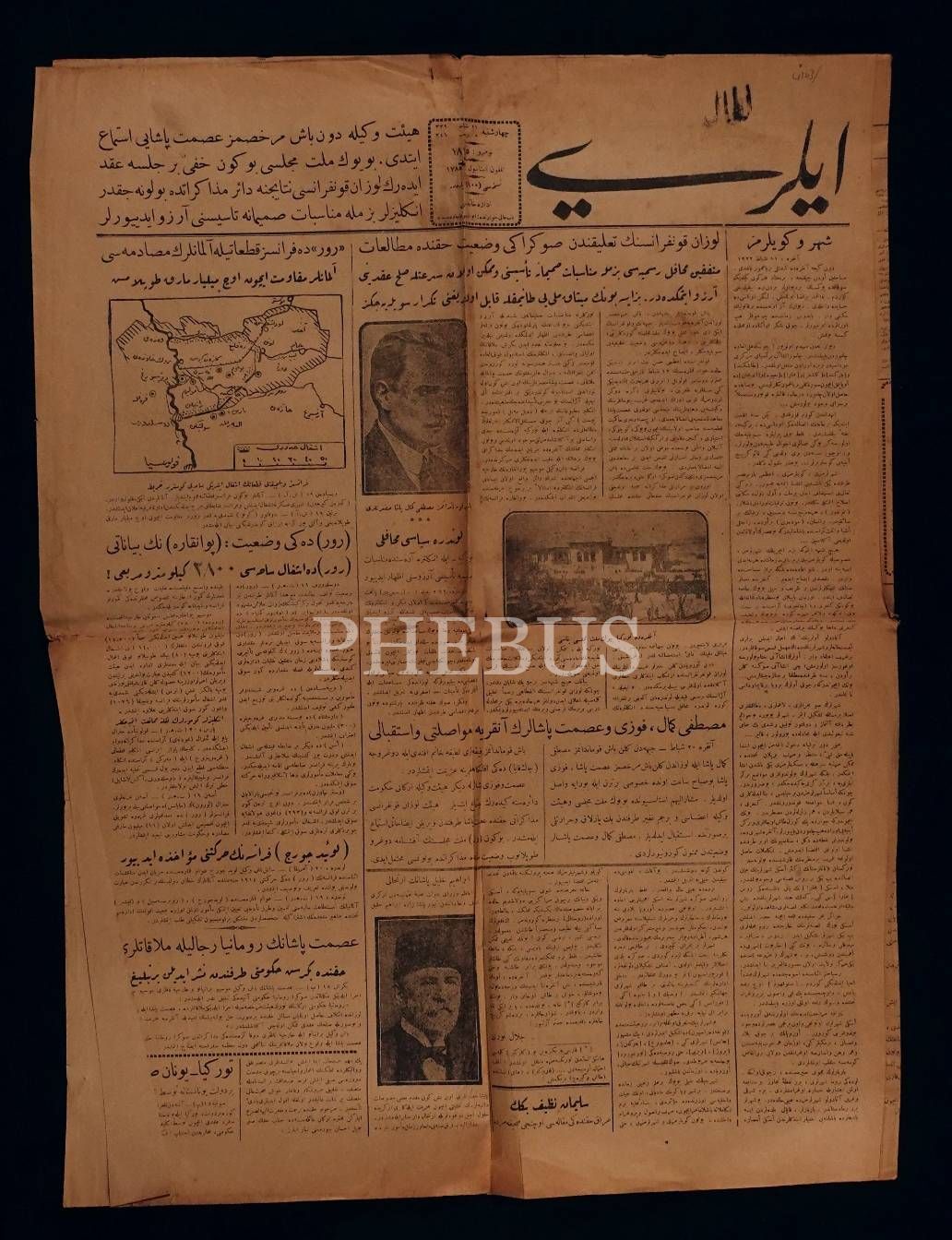 Mustafa Kemal Paşa görselli, 5 Recep 1341 tarihli İleri Gazetesi, 4 sayfa 46x63 cm...