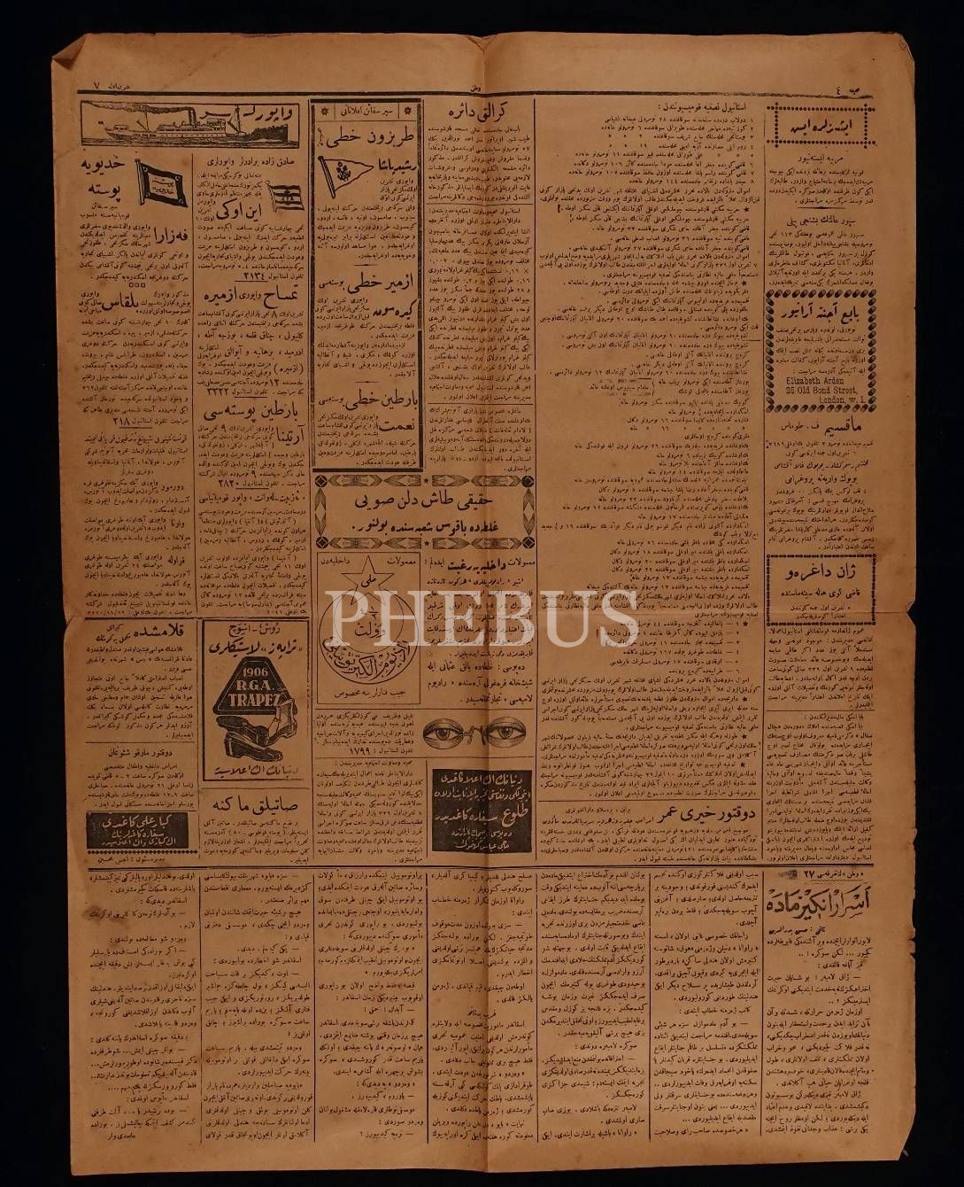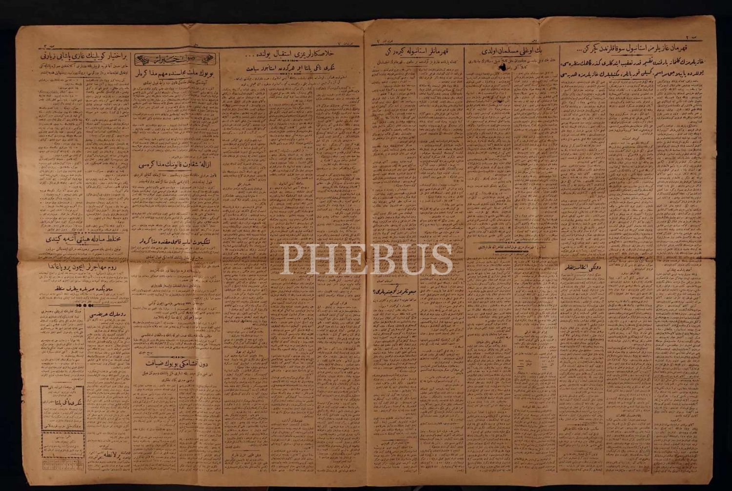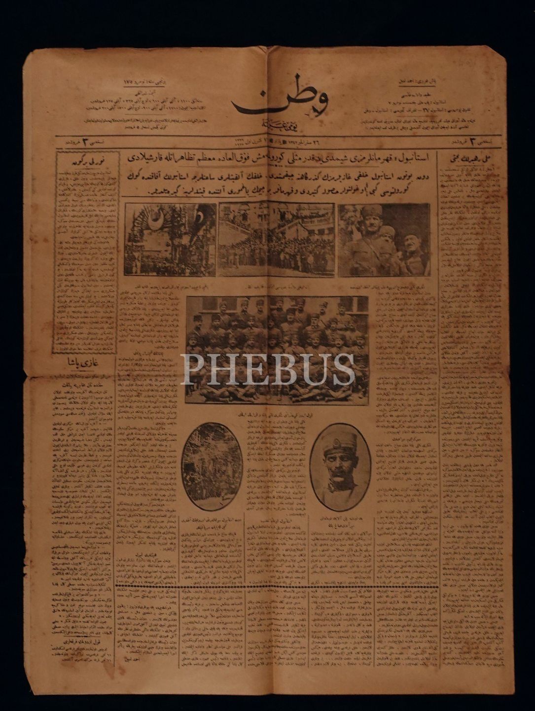 " İstanbul; kahramanlarımızı şimdiye kadar meseli görülmemiş fevkalade muazzam tezahüratla karşıladı" manşetli, 26 Safer 1342 tarihli Vatan Gazetesi, 6 sayfa, 47x60 cm...
