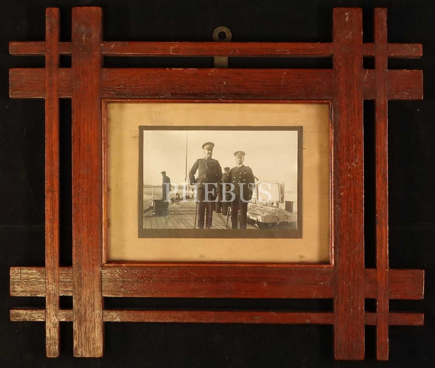 Mareşal Fevzi Çakmak ve Cumhuriyet tarihimizin ilk harp filosu ve donanma komutanı Şükrü Okan´ın üniformaları ile gemi güvertesinde hatıra fotoğrafı, çerçeve: 36x30 cm, fotoğraf: 14x10 cm...